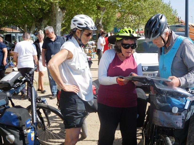 What ensued was a classic session of the Usual Questions. In this case, a two way exchange. We found that they live here but will shortly take a train to Nevers and then cycle the Loire to the Atlantic, then down to Bordeaux, and across the Canal du Midi, and back here. In short, several major pieces of our own ride, except in the reverse direction.