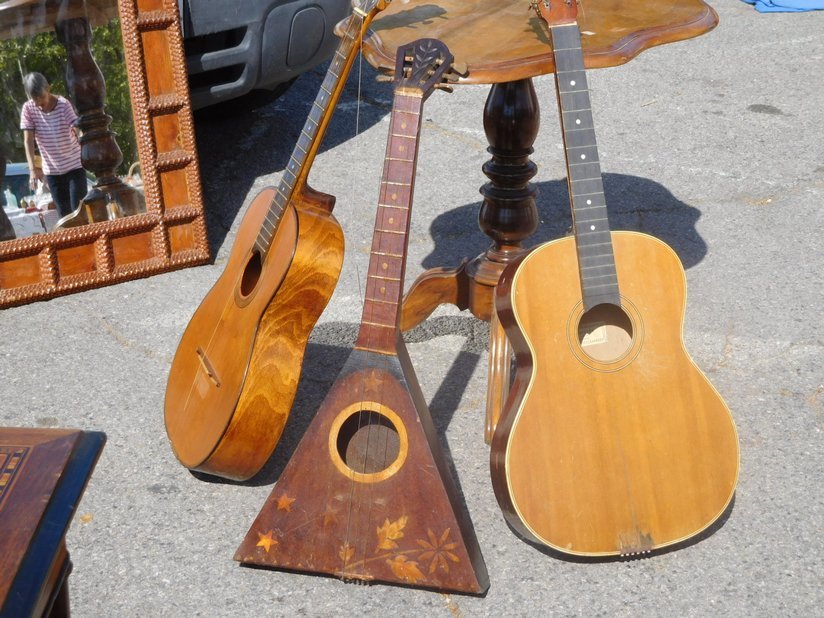 We then began to thread our way through the large flea market. Mostly it seemed like uninteresting junk, but some things - guitars, balalaika, old record players, maybe.