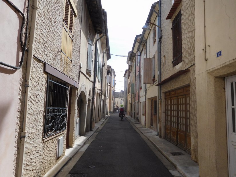 Rather than go entirely back onto the Via Rhona, which at this stage was a head-windy dike by the river, Dodie found us a route on road. This started off on the actual current N7, but we soon cut out to some quieter streets. In several cases cars coming from behind us in narrow situations failed to wait but rather pulled out and around, risking head on collisions with oncoming traffic. I couldn't help but think how fast these drivers would fail the drivers' test back home, and I wondered what they actually teach in driving school, if anything, over here.