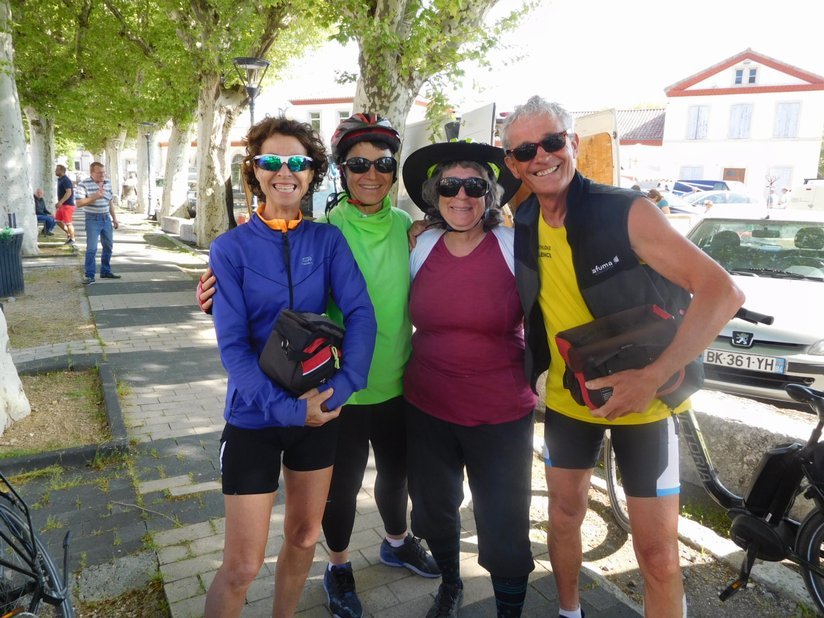 Dodie came out with an apricot tarte and the best brownie it is possible to imagine. Hooray! She was followed in short order by a man who turned out to be Jacques, and then his wife Christine, and their friend, Christine. These were the owners of the three stashed bikes.