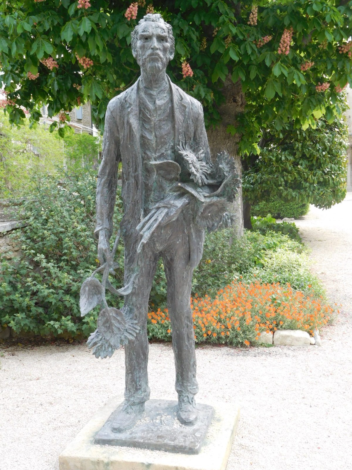 Van Gogh wrote many letters, mainly to his brother, about what he was thinking and how the painting was going. He talked about and painted what he saw from his asylum window, and it was an experience to look out that same window, though he mentioned fields, that now seem to be gardens.