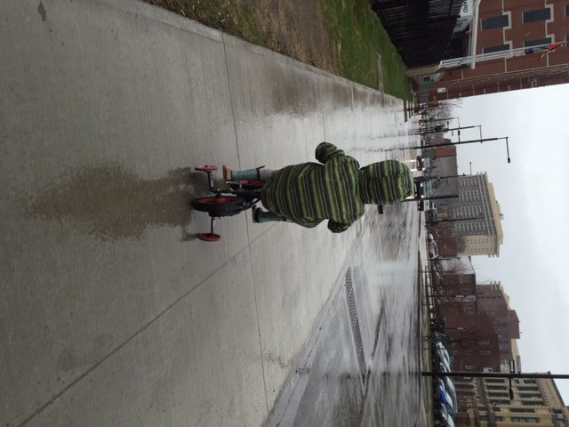 "Joe is certainly made of Miller stuff, as he insists on riding his bike every day to school now, even in the rain. Notice how he is wearing his pants with bikes on them from you guys, and boots and rain jacket hand-me-downs from Avi. His new green helmet fits underneath the hood of his new raincoat which makes him oh so happy!And I am not allowed to help him up hills, he would rather grunt and peddle and when it gets too tough he pushes the bike up the hill rather than let me help at all. There is a lot of Dodie in this kid. 😁"