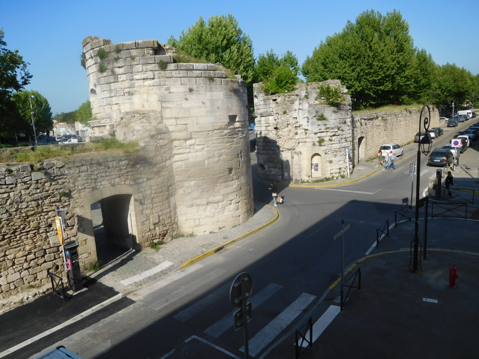 After whirling though the last rond point (i.e. roundabout - known to us a "meat grinders") we were spat through the northern gate of Arles and bing! - heaven. Our hotel is actually just inside the gate. I can see the good modern use of the walls and gates - they help keep those blankey blank cars out!