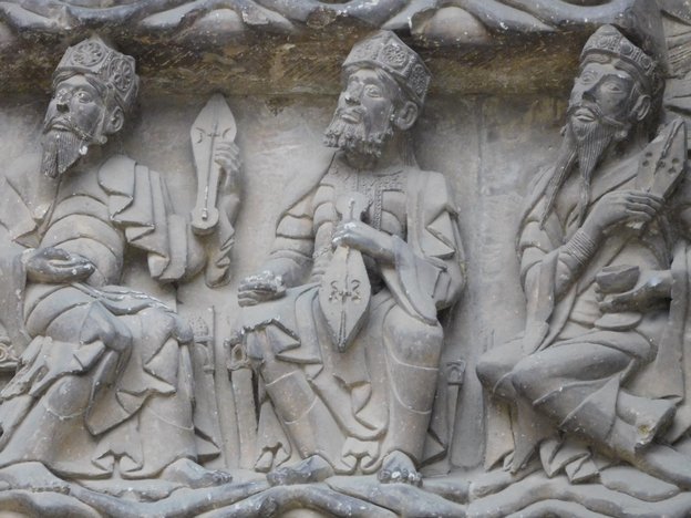 This of course adds to the downtown ambiance, a bit unusual given that abbeys are often found out of town, up on a hill. A little like a cathedral, the abbey has a sculpted portal. There is a long description nearby of what is to be found in the sculpture, but it is all to much for me to absorb.