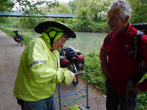 This man turned out to be 81 years old. Last year he had done the Camino, from St Jean Pied de Port to Santiago. Now he was back, to do Le Puy to St. Jean, thereby finishing the whole thing. 81 years old, pulling a shopping cart! Buon Camino, and hats off to you sir.