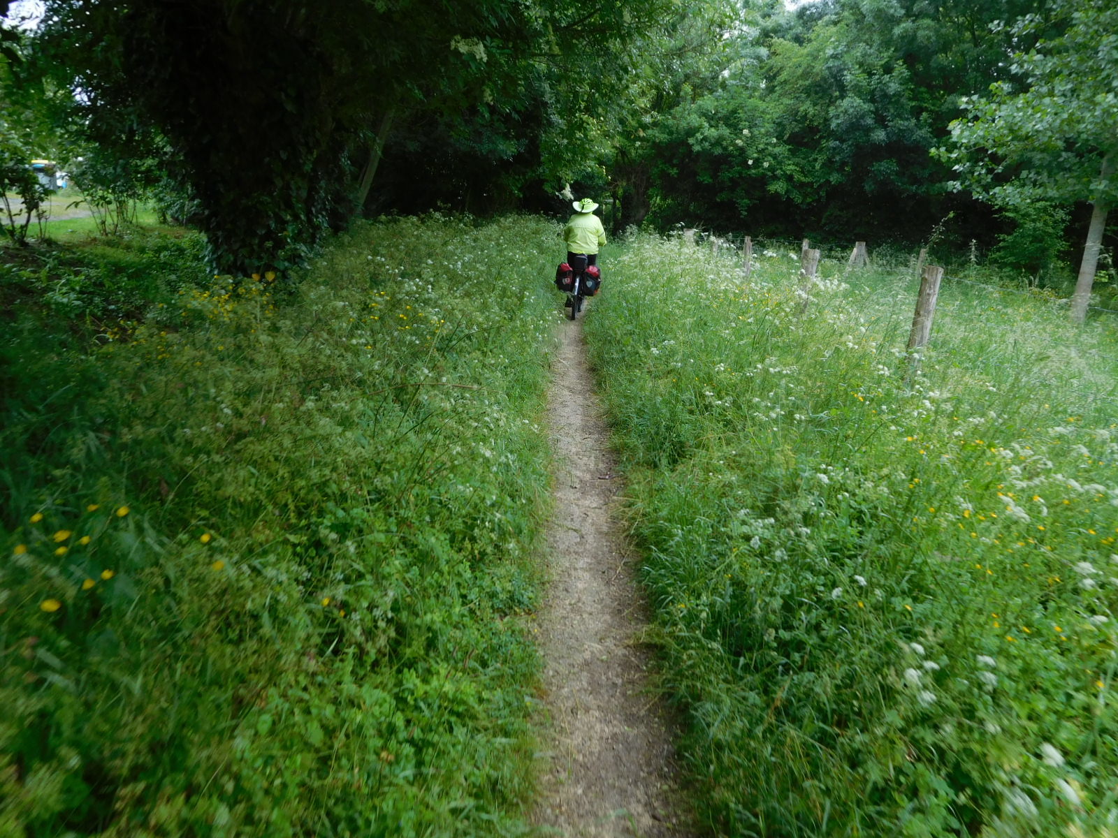 Up until Niort the cycle way has been following the river. But the next stage takes off cross country, over hill and dale. By over hill and dale I mean hill and dale and hill and dale, without end, for 70 kms! We began to think - we positively knew- that we had been too naive and exuberant in booking a place at Parthenay. To help make the point, the weather conjured up some rain, and mixed in a little wind. Ok, a lot of wind.