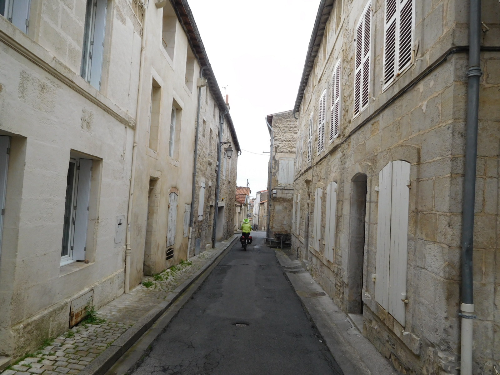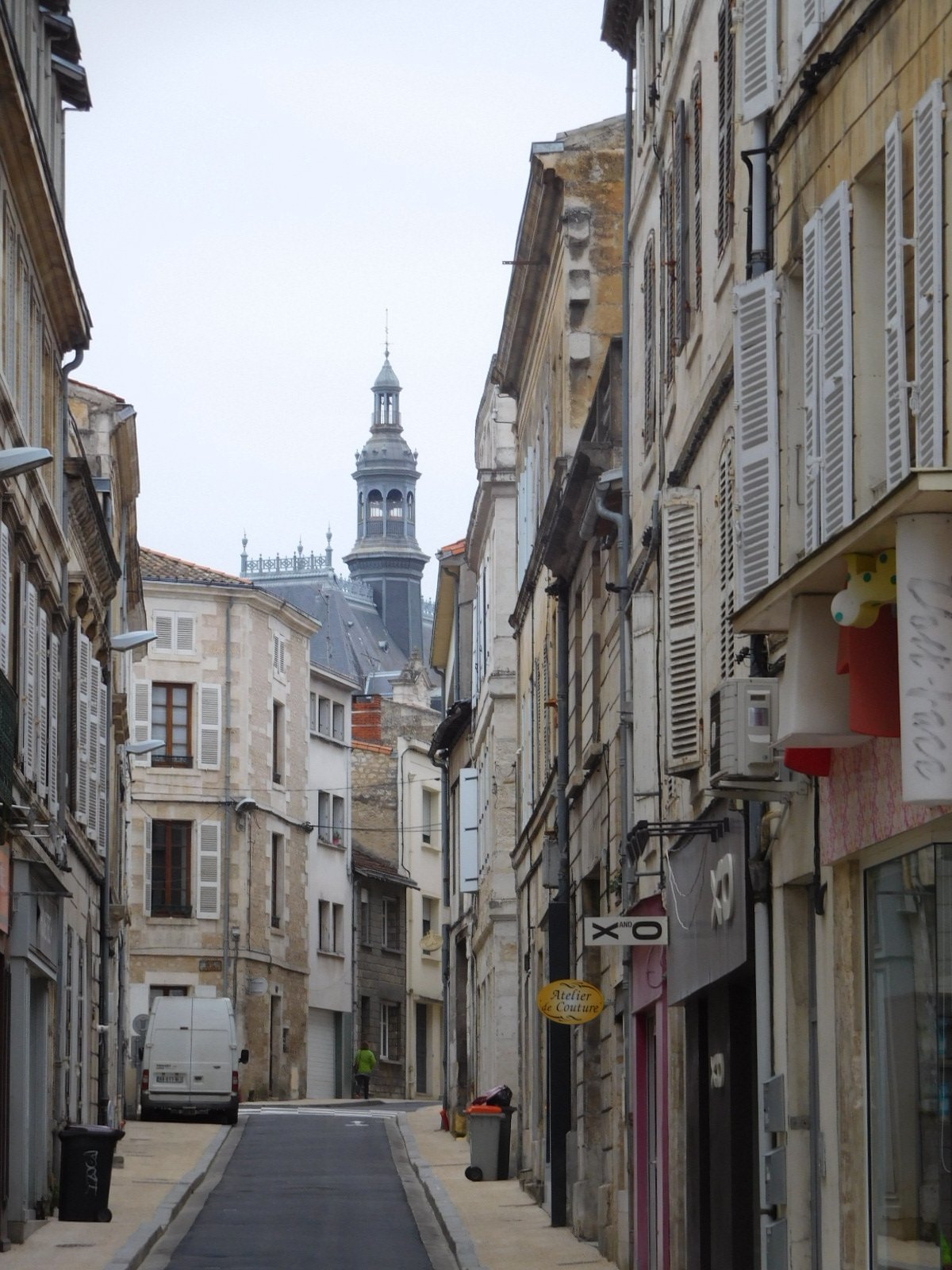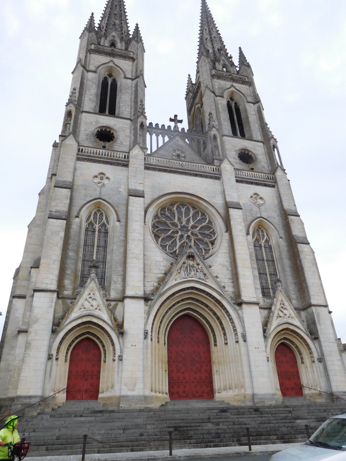Niort has several nice churches, an impressive city hall, and a large grey structure called the Donjon. The Donjon is two keeps that are the remains of a former larger castle. There are also some pedestrian only streets, very neat looking with no people around. We whipped through the whole thing and happily snapped photos. We especially liked the twin towered Saint Andre church. It sits on a bit of a hill, and when we cycled up to it we found ourselves in a neighbourhood of very old and satisfyingly decrepit houses. We felt typical tourists would not usually come up there and would miss seeing this.
