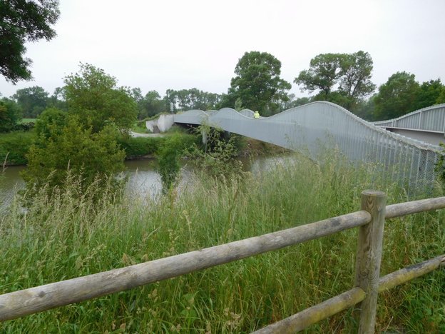 Behind Decathlon is the passerelle that puts us directly back on the bike route, after crossing the small Authion river. I wanted to put in a Google Map to illustrate this, but Google absolutely will not recognize the bicycle bridge. That's why we were lucky to find the Decathlon ad, with map, yesterday.