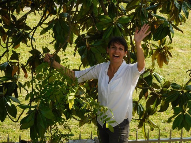 The Magnolia after which the place is named is right in front of the house. Here is Delphine up in the tree, working on pruning.