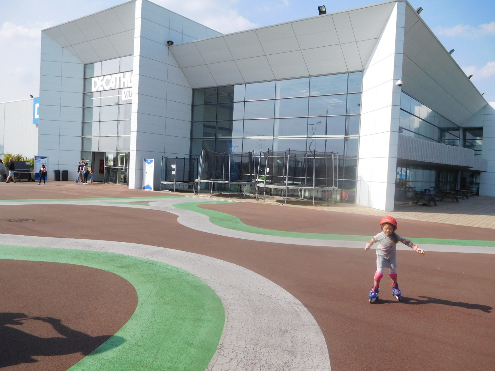 We went from our hotel back to Decathlon, now closed of course - good thing! This Decathlon is quite remarkable, because to foster sport development (and sales!) they have a lot of play space in and around the store. Here is one shot from yesterday that I neglected to put in: