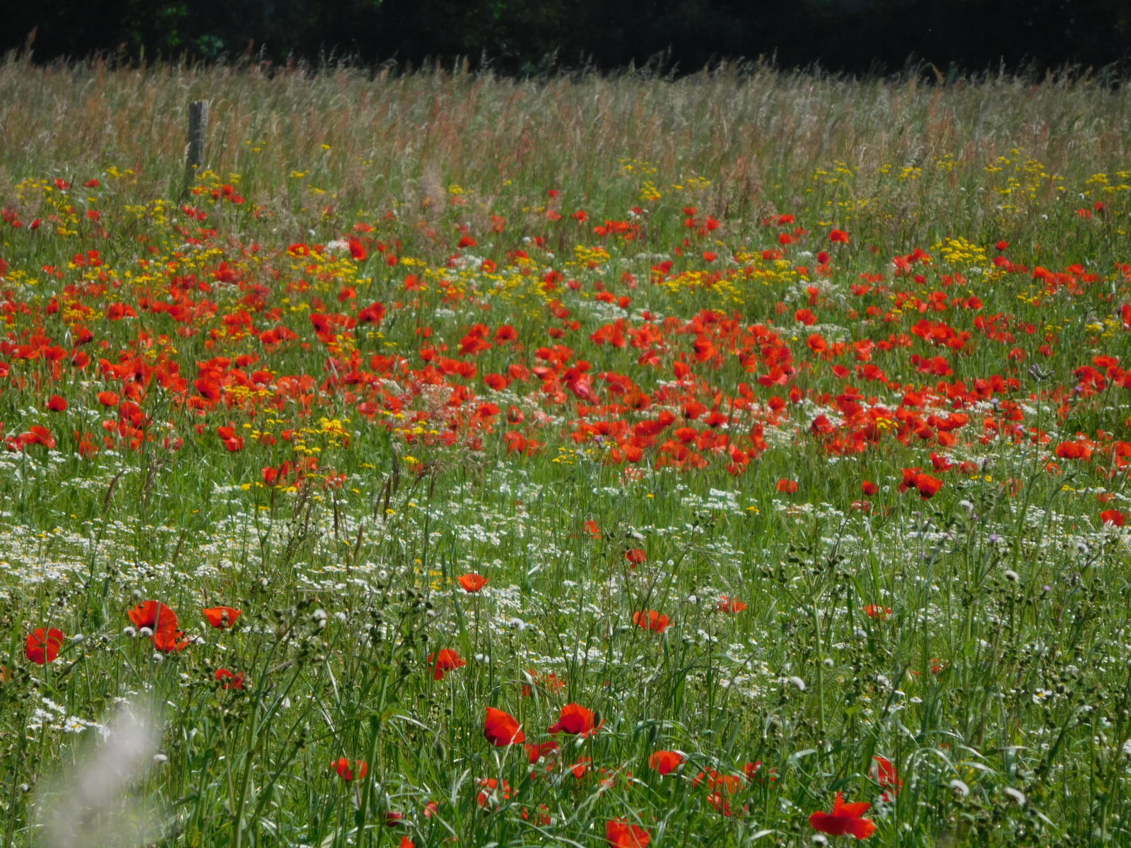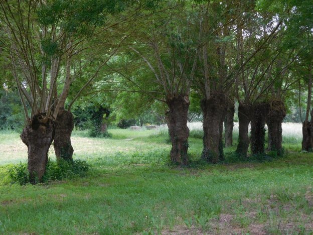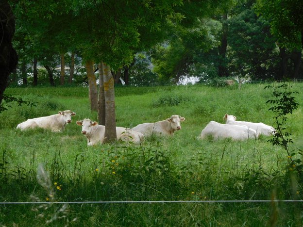 Peaceful trail side flora continued as a theme for the day. We came to one area that was designated a community pasture, a "Common" I guess, in British usage. This had a very relaxed small herd of Charollais cattle. It also featured pollarded trees, where the branches are cut from a main trunk for continual production of fire wood. It was all billed as very environmental.