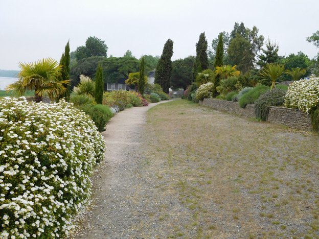 The flowered wall theme was extended when around Ste Gemmes we came to a little Mediterranean garden. This featured mediterranean type plants, most nicely labelled. One particular one that we liked might be called (in French) Laurier Rose. Does anybody know this one?