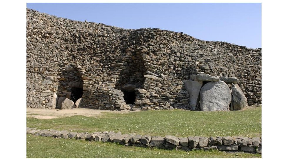 We had spotted from a pamphlet that there are three megalithic sites in Brittany, and we were right near one of them! This is called the Great Cairn of Barnemez. It is a tomb from 6000 years ago, and includes 11 multi tonne granite slabs, one of those engineering miracles of the ancient world. We cranked our bikes up the steep hill to the site, only to balk at the six euro admission price. We hiked up above the site and through a field, catching a peek at the backside of the large mound.