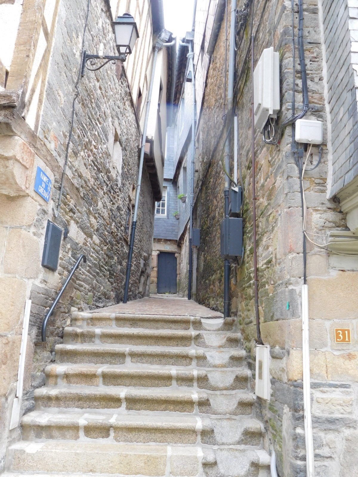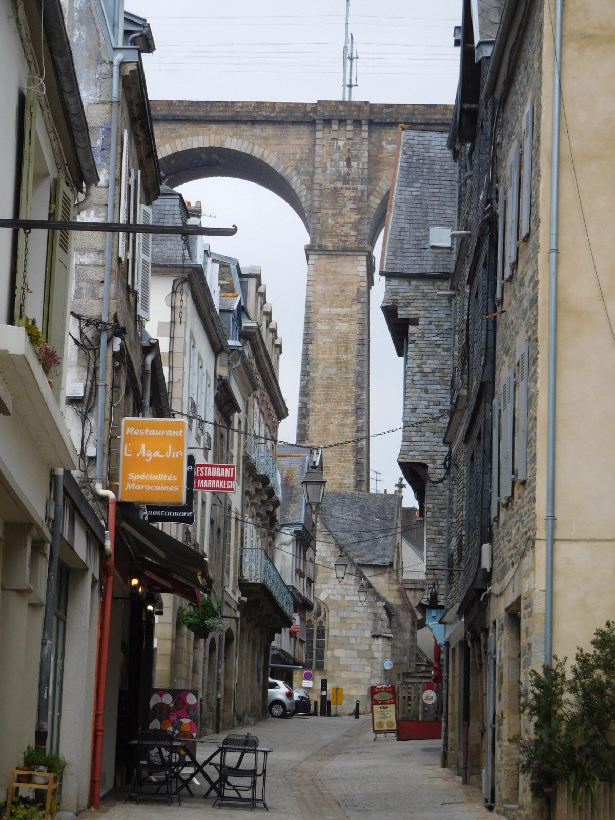 A major feature of Morlaix, as we learned from postcards on sale near our restaurant, is a giant viaduct that crosses above the town. That and the Eglise Saint-Mélaine almost underneath it, formed the main backdrops for my attempts capture in photos the essence of the old town: