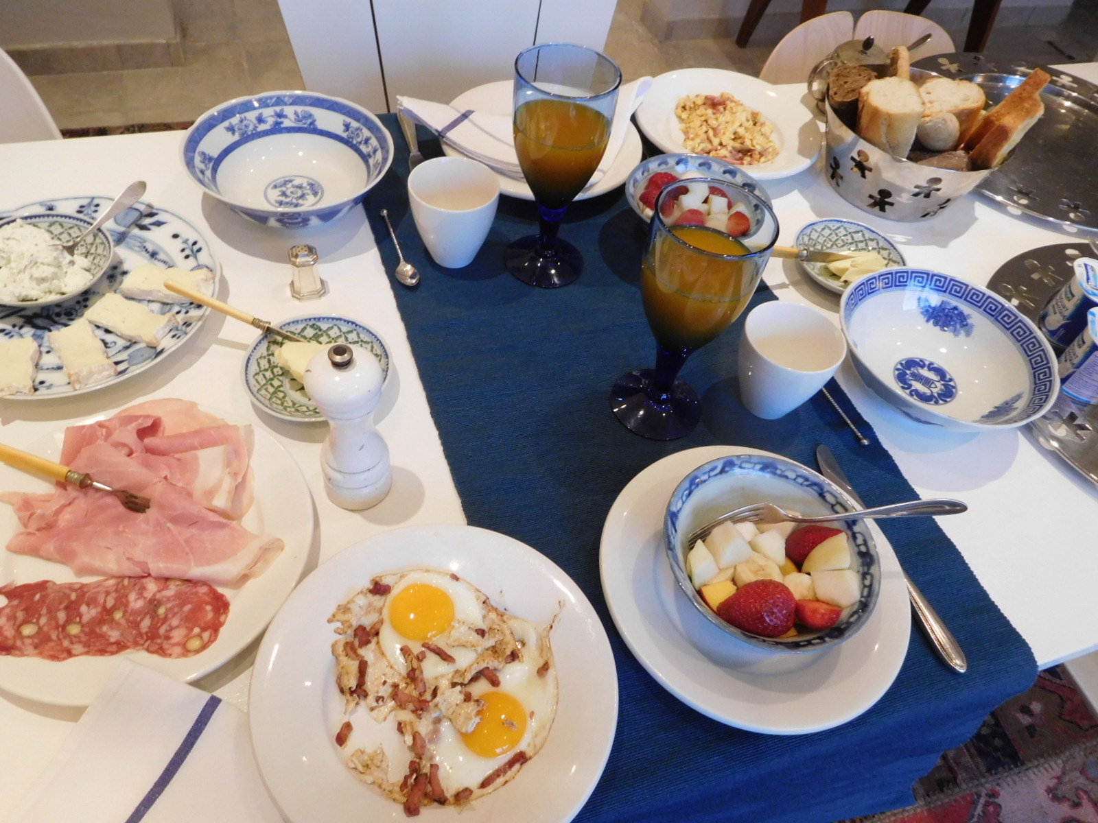 Jotto and Wil put forward a true non-French breakfast, with fresh fruit salad, eggs, ham, bacon, cheese, etc. etc. The quality was completely excellent and the surroundings elegant. Jotto even put on some classical piano for us. In combination with the super comfy room and bed, good wifi, and warm welcome this was one of the best places we have stayed.