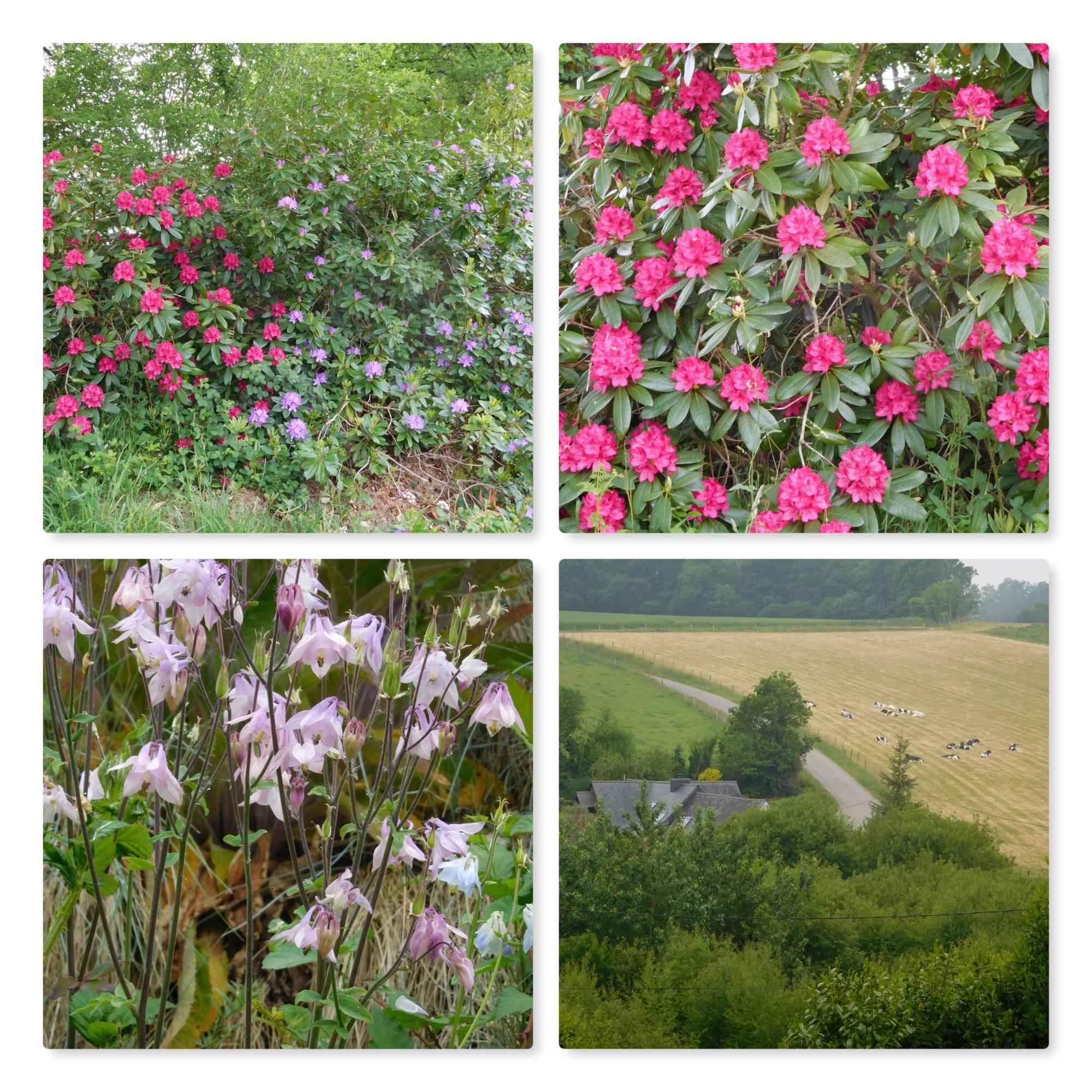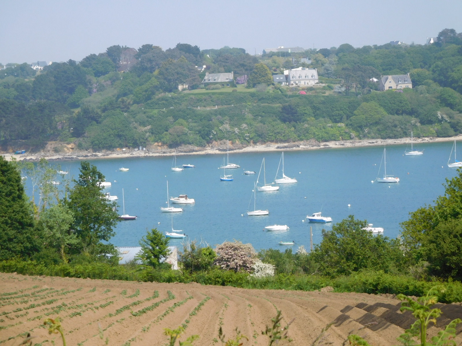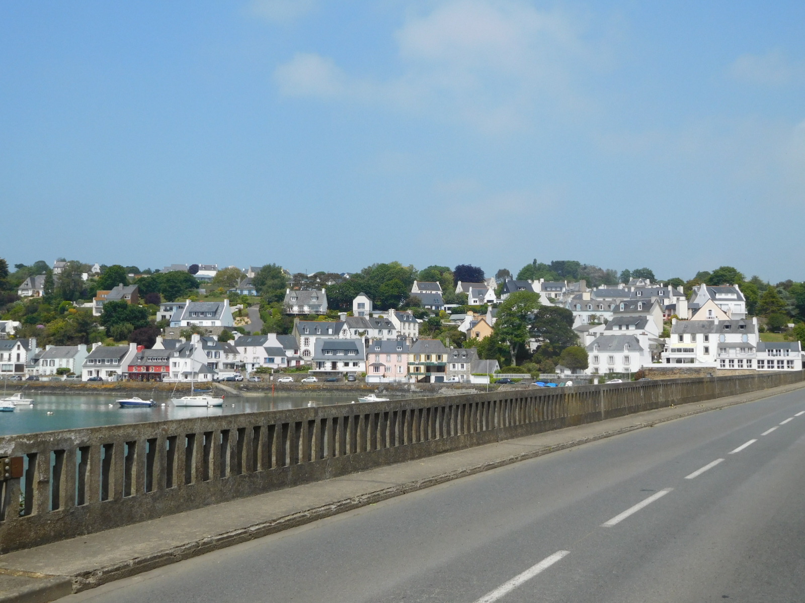 Morlaix is not far from the sea, and soon we were riding up and down along the bordering hills. The marine environment always seems to evoke its own architecture, and while all stone houses were still in evidence, the overall impression was now of white ones. They are cheerier, and seem tin harmony with the more intense seaside light.