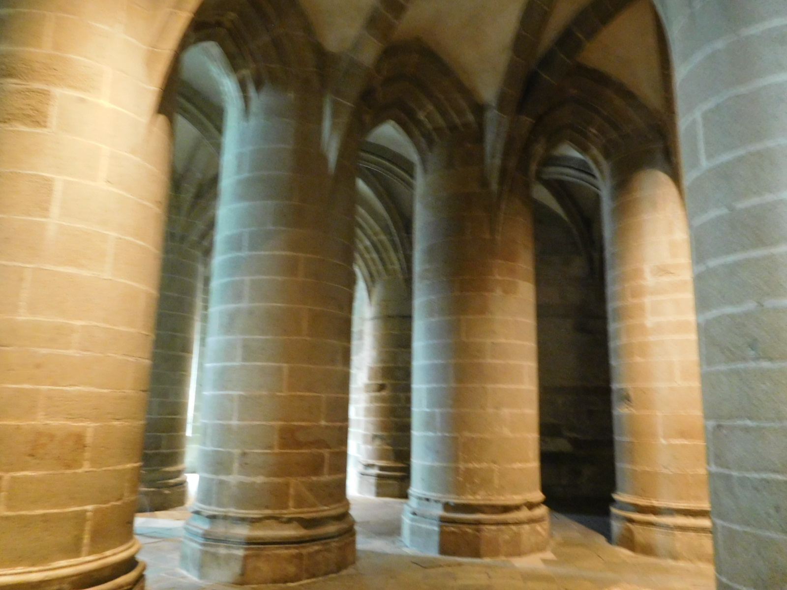 We could not necessarily understand the structural details of this complex set of buildings. But we did learn that the main church was supported by several crypts, and that the one supporting the apse (area behind the altar) had collapsed in the 15th century. The rebuild was made extra sturdy, with fat no nonsense columns. One of the other crypts also took a cautious approach, with really thick walls.
