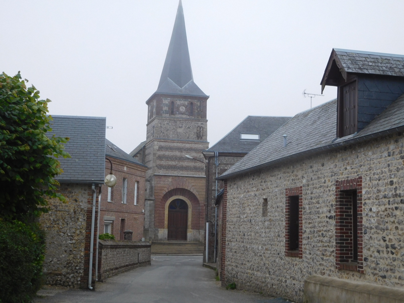 Yesterday we had been noticing the amazing buildings all the way to Honfleur, and then got a dose of cold water thrown by what we saw as the soulless Le Havre. But today, slowly, we began to appreciate the buildings again, and by Le Tilleul began to exclaim at how brick was being worked in with flint in the beautiful houses of this area. We had previously seen flint in construction in England, but not in any French region we had been in so far.