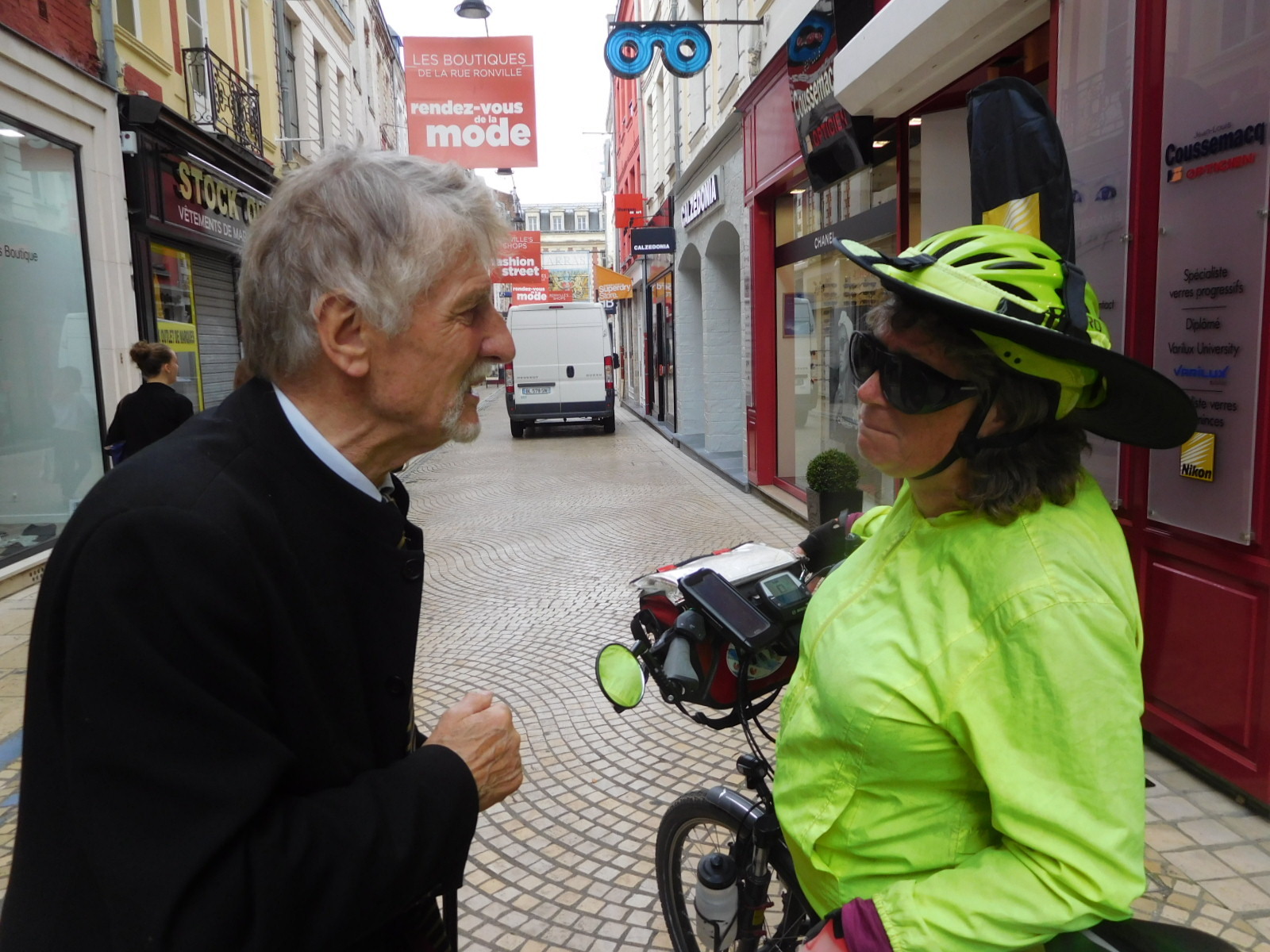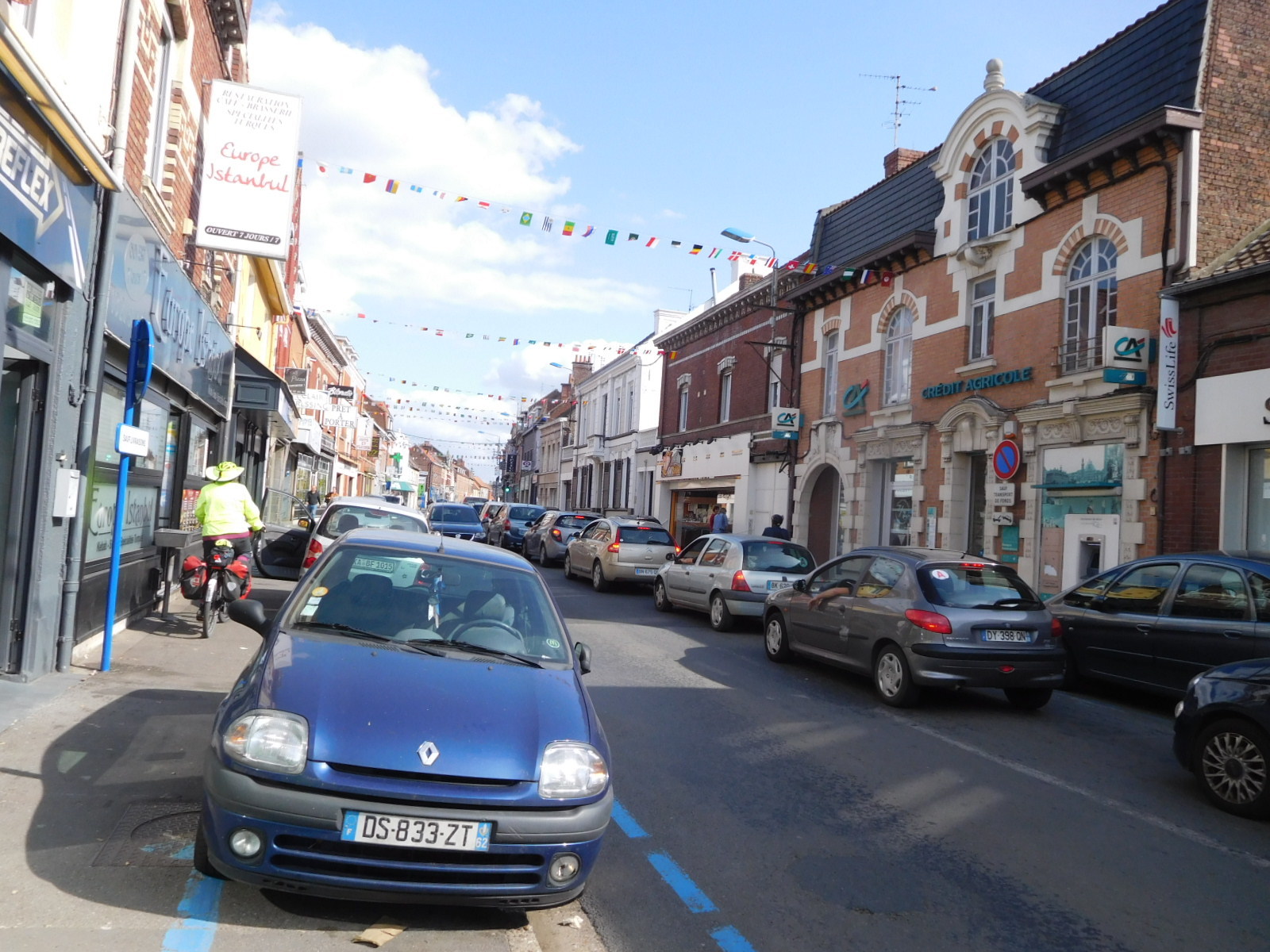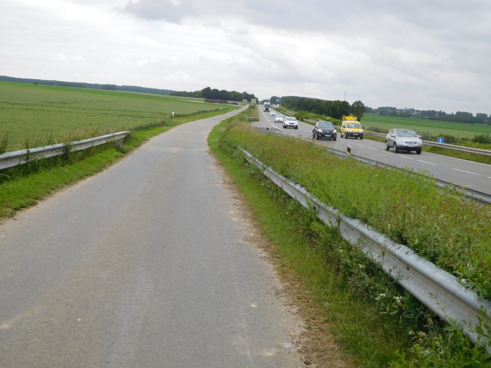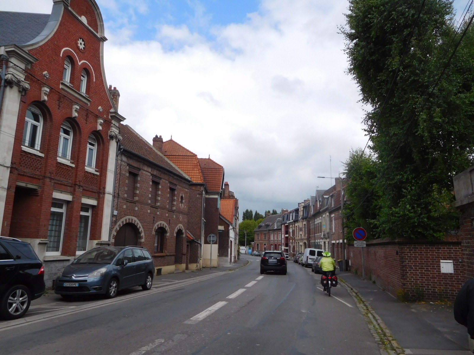 We had booked a place in Lille, 40 km distant. In principle, at our usual 10 km/hr crawl that would be 4 hours away. But the route was convoluted and road markings not always there or clear. While not an intense urban scene, what we had was sort of continuous nondescript village, always with lots of cars trundling around. The places had names in that this used to be distinct villages, but only occasionally could we see the features of a real village (city hall, central square, etc.) we went from named place to named place.
