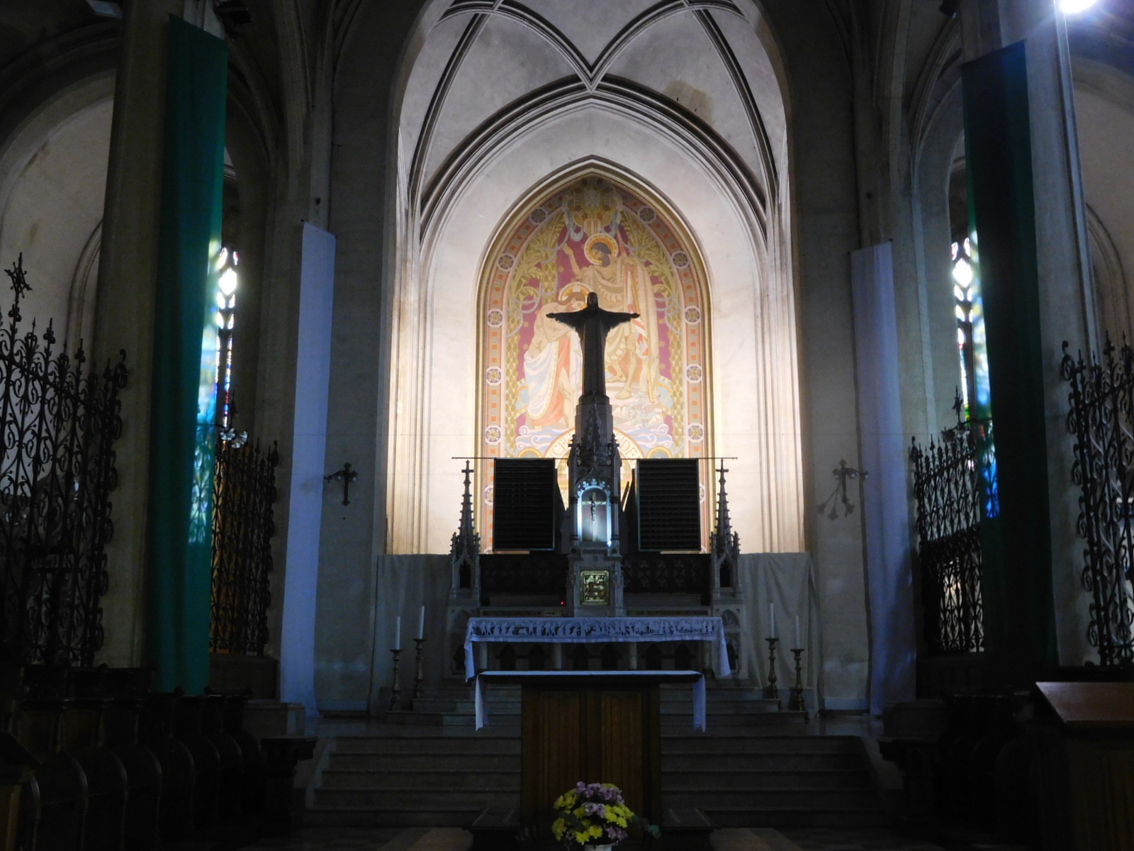 Behind the market square is a church that looked to be the cathedral. In fact it is just called the church of St Jean Baptiste. I thought the Jesus figure behind the altar had a great dramatic touch.