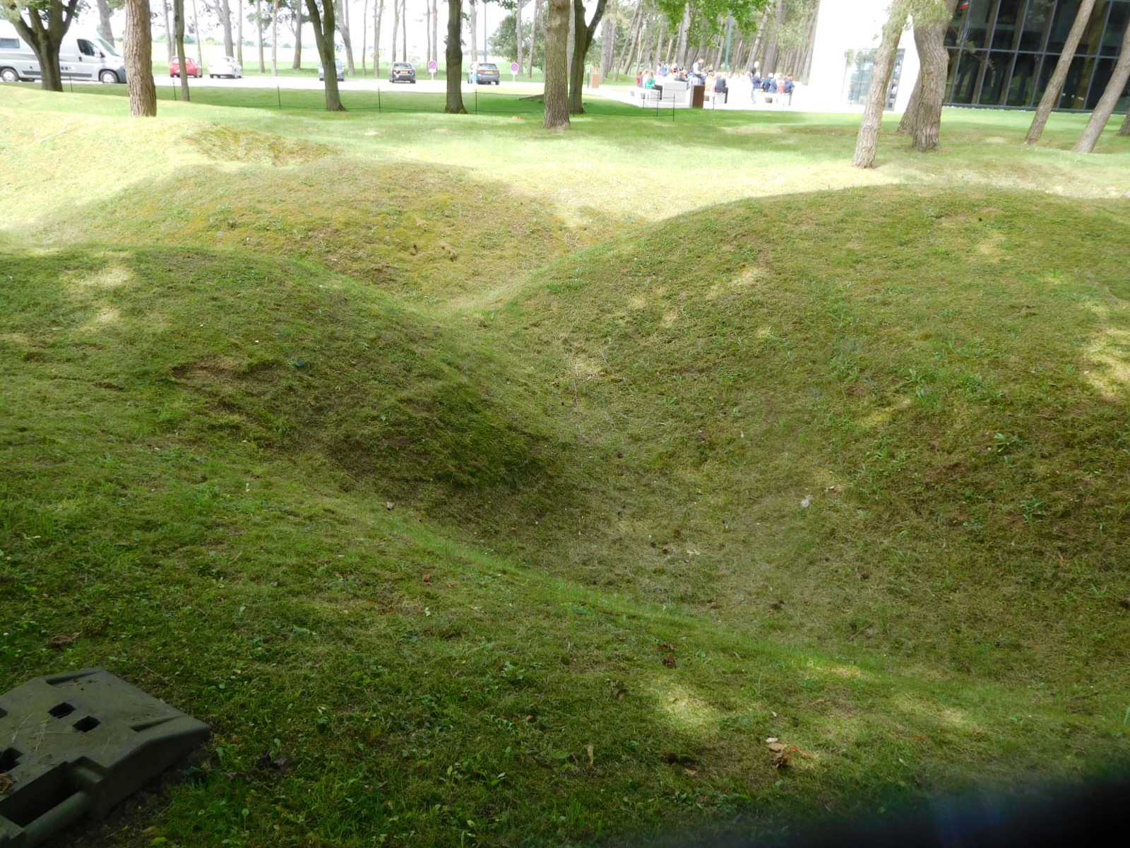 The Memorial building and display had been completely redone since we were first here in 2012. At that time the presentation had made us uncomfortable, since it loudly proclaimed Canada's arrival as a "real" country and military power as a result of Vimy. Now we had an understated display that sort of covered all the points about the war and the battle and Canada's status, but very conservatively. Also, as an illustration of the approach, there were things like a grenade, or some shells, in a pristine glass display cube. That's a big contrast with even the museum at Albert, that had piles of the things lying about.