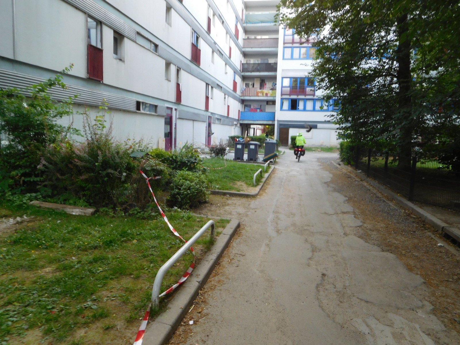 Finally, at 8 p.m. or after, we came into the section of the Lille outskirts containing our B&B. To get to the actual address, we passed through a very grotty public housing project, and were a bit leary when we rang the bell of our nearby house. The man who answered, Jean Luc, was a bit puzzling. He spoke English and French, but I had lots of trouble understanding him in either, and vice versa. Still, the room was fine, so it's ok. And our bikes are safe in a walled garden.