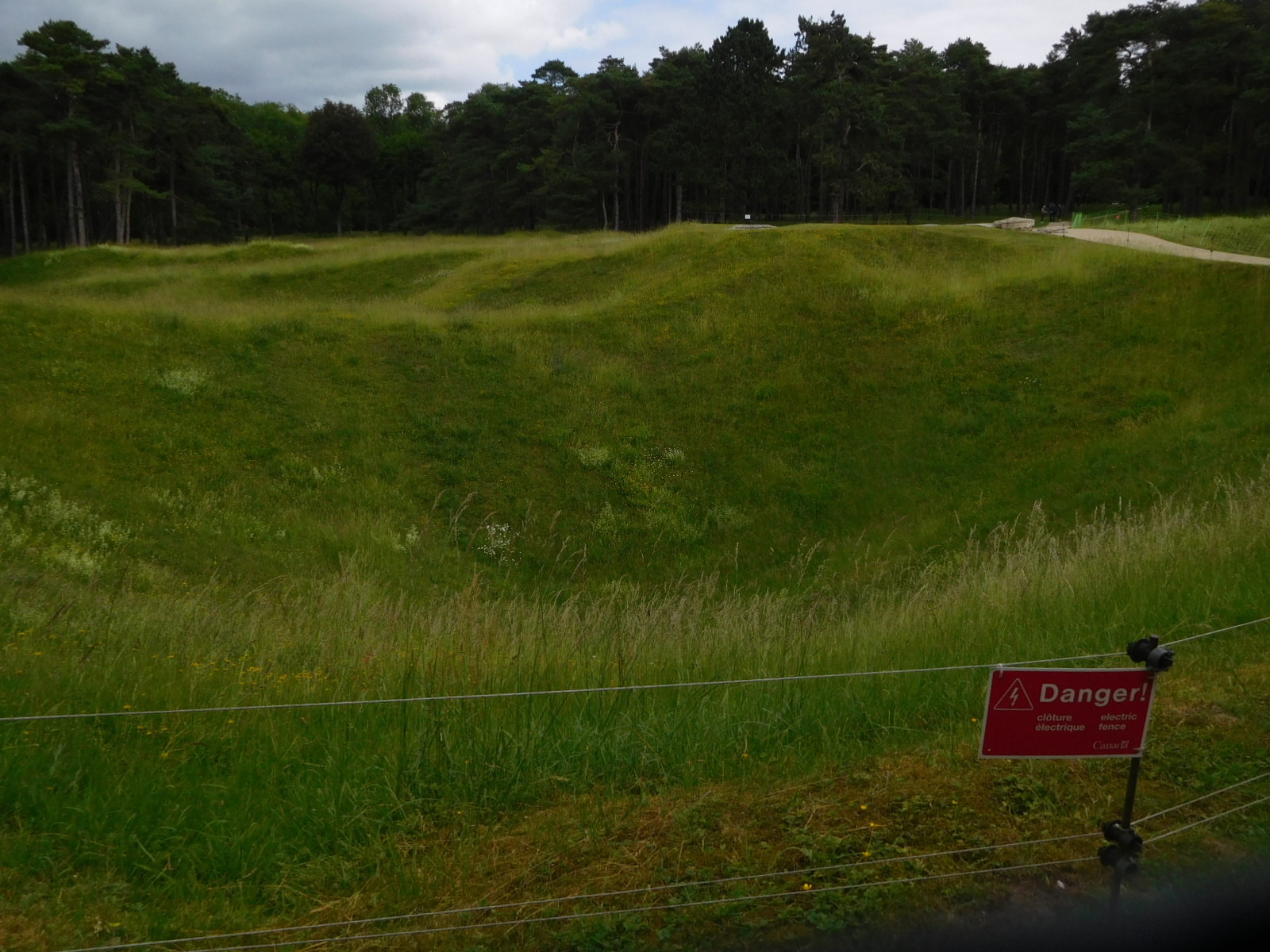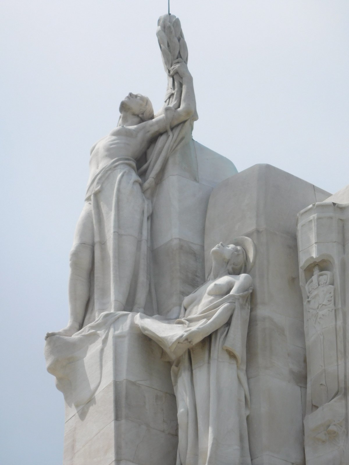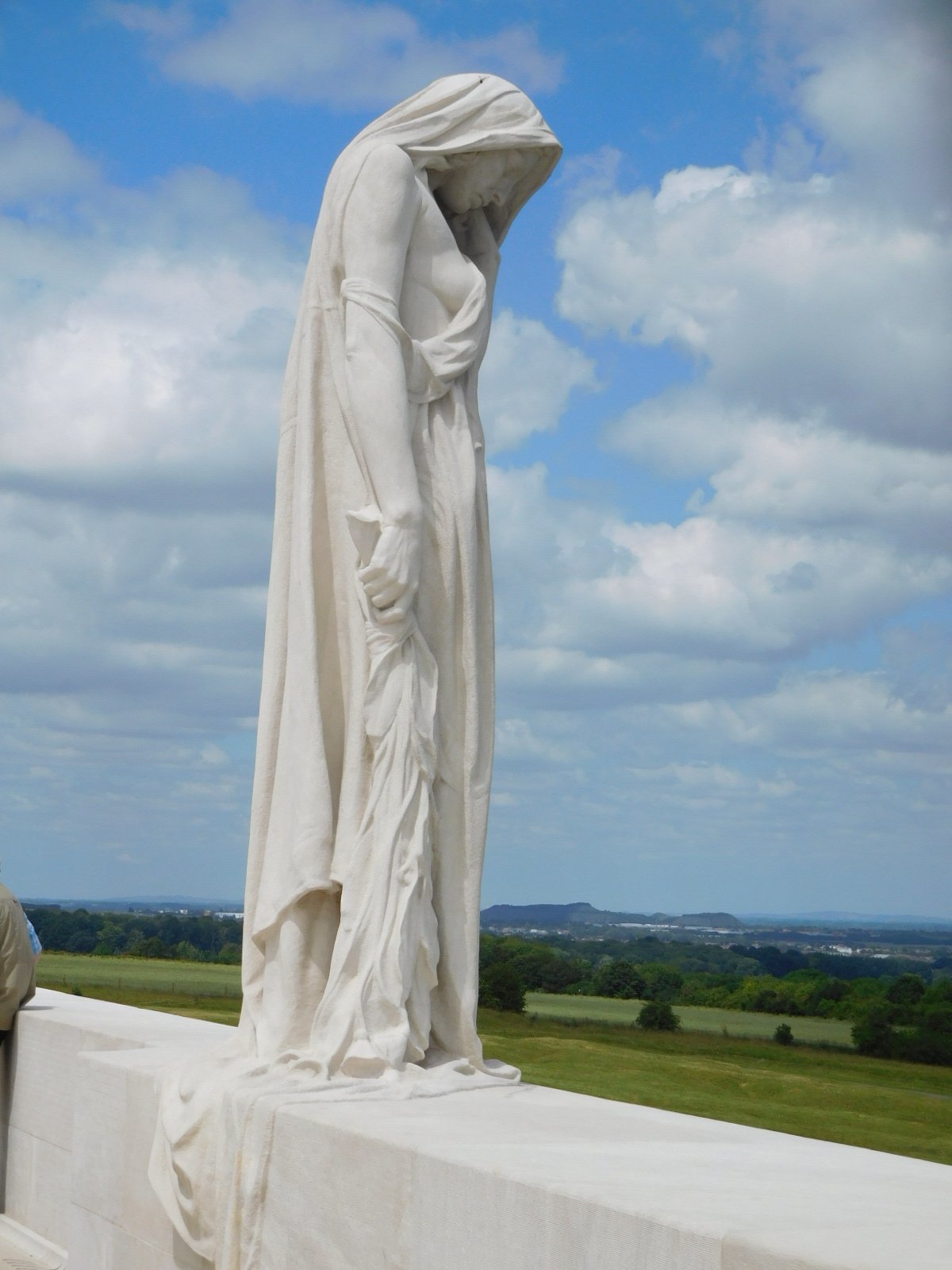 A very dramatic memorial was built at the ridge in the 30's, taking 11 years to build. It features large figures sculpted in limestone by Walter Allward, and sits right on the edge of the ridge. Standing on the edge of the monument is a cloaked female figure, the Mourner, looking out over the ridge.