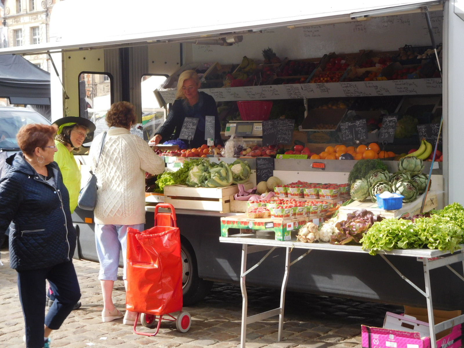 The square in front of our hotel has an information panel that states that markets have been held continuously here and in the square behind for 900 years. On Saturday, the main market day, both squares are filled with vendors. Today, Wednesday, is the secondary day, with only a moderate number of vendors, in the second square.