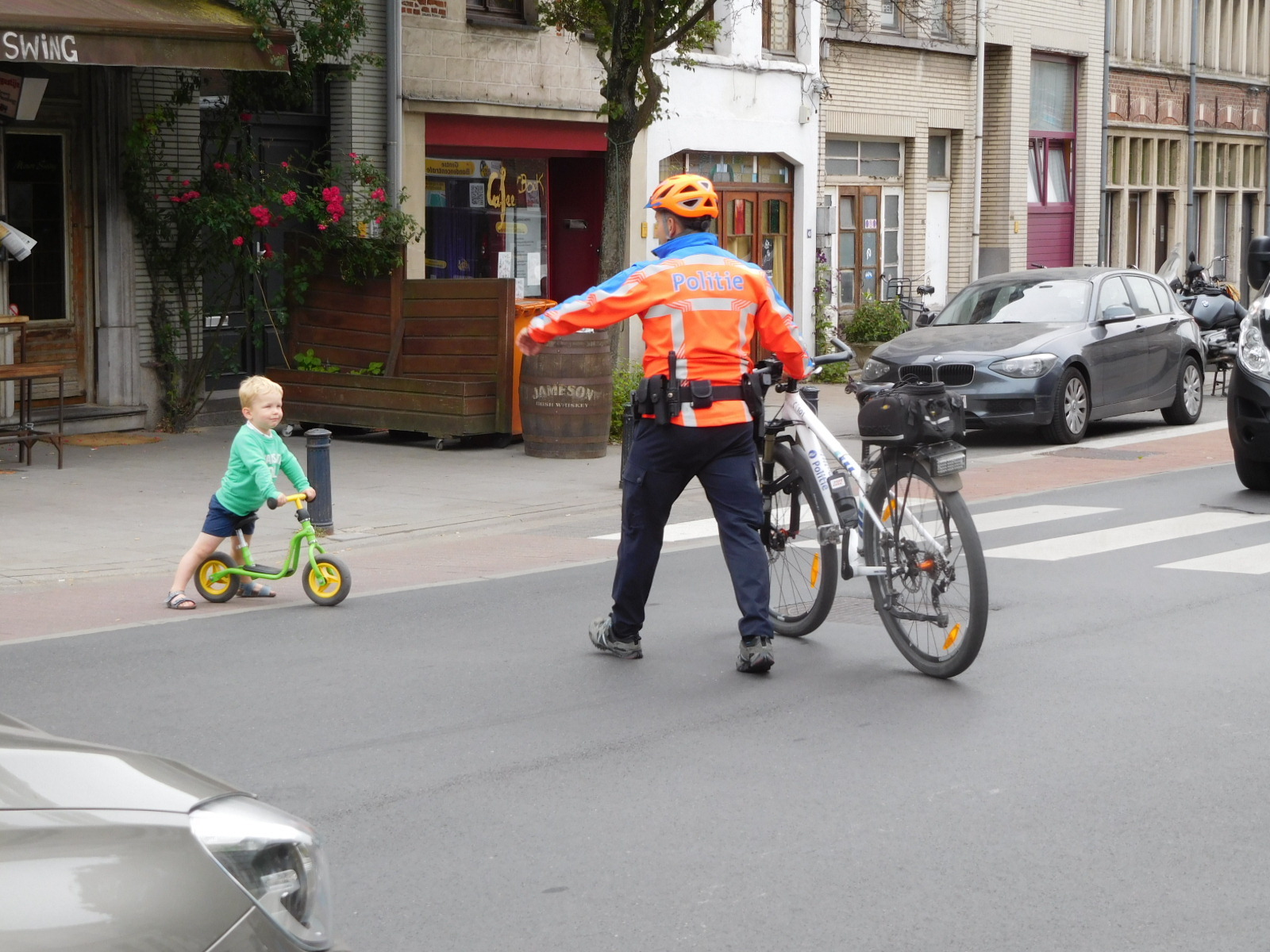 We set off down one of the interesting streets full of shops and fine buildings, but stopped short to find a little boy, about three years old, trying to cross the street on his "bike". Fortunately there was a nearby bicycle police officer. A lot of questioning maybe sorted out where the boy lived. In Ghent, anyway, the policeman is still your friend.
