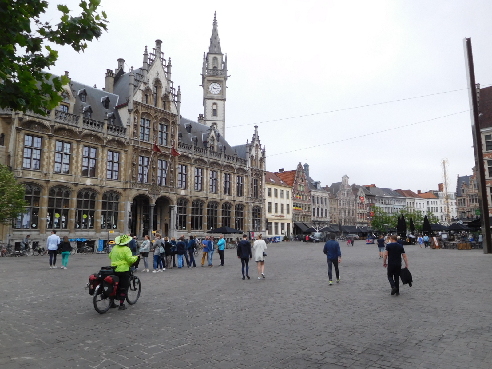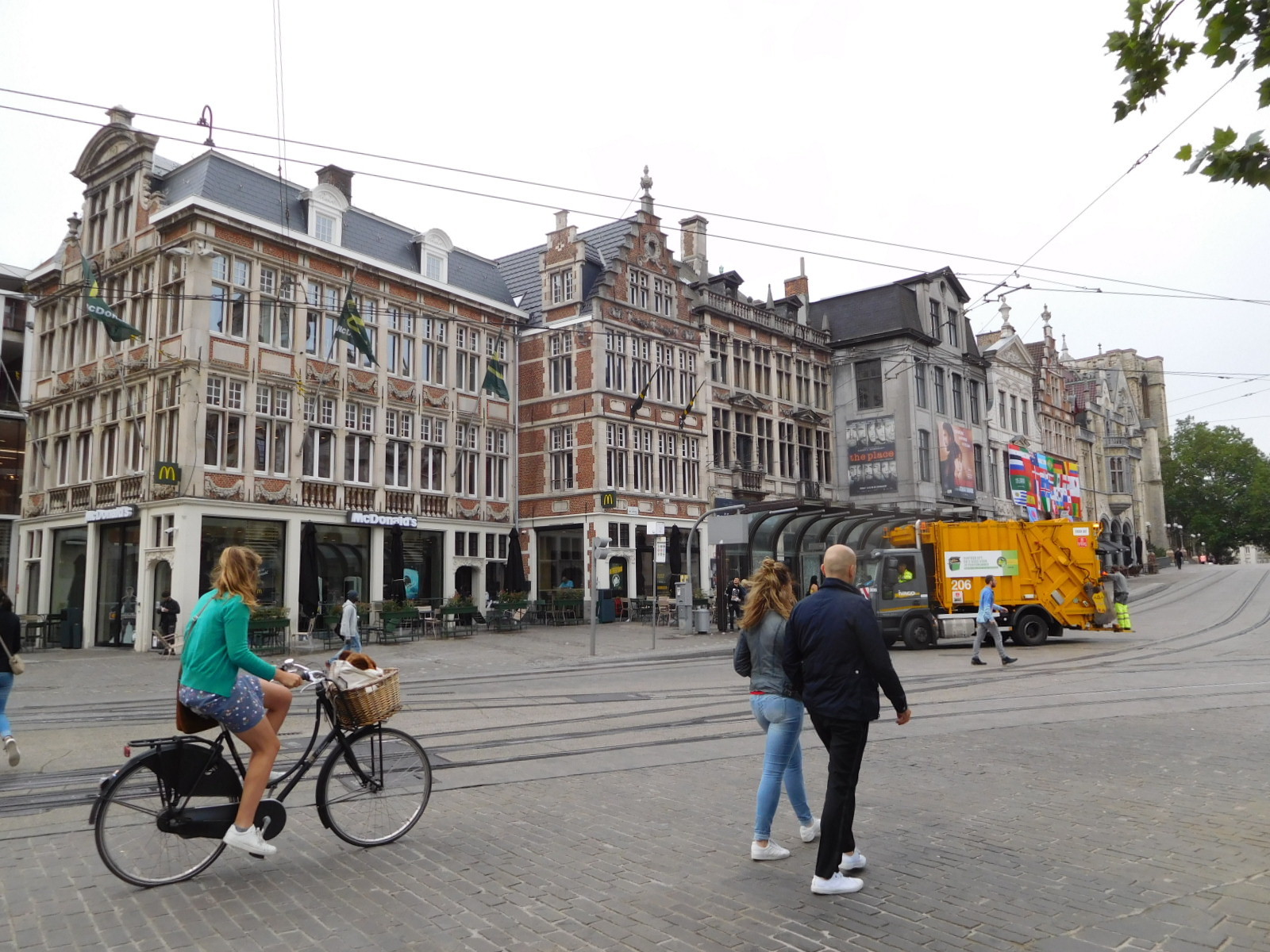Our first chore was to cover the 10 km from the little suburban town where we spent the night, into Ghent. We knew that we could navigate along back roads, but we have come to realize that almost all roads in Flanders have a bike way. So we hopped on a larger and more direct road, and sailed down the built in bikeway.