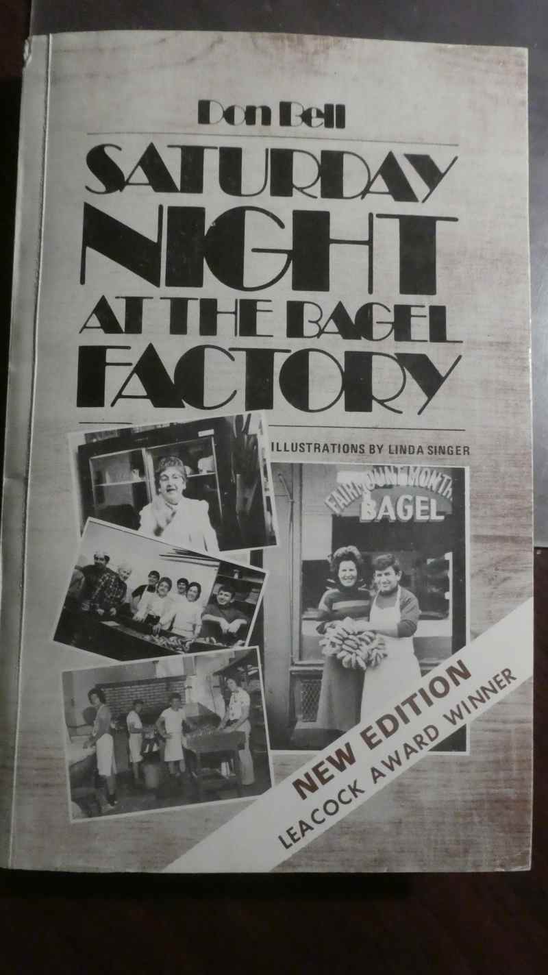 Some people will use a time like this to read books. And yes, there are lots of good ones even on our own shelves, that we have read and long ago forgotten. I pulled one out: Saturday Night at the Bagel Factory. It's set of short stories with a Montreal theme, from 1972. But I have the spiffy new 2nd edition: 1983. My actual copy was stolen from our daughter Laurie. I know this because it has a 1995 inscription from the current owner of the (St Viateur) Bagel Factory, Joe Morena.