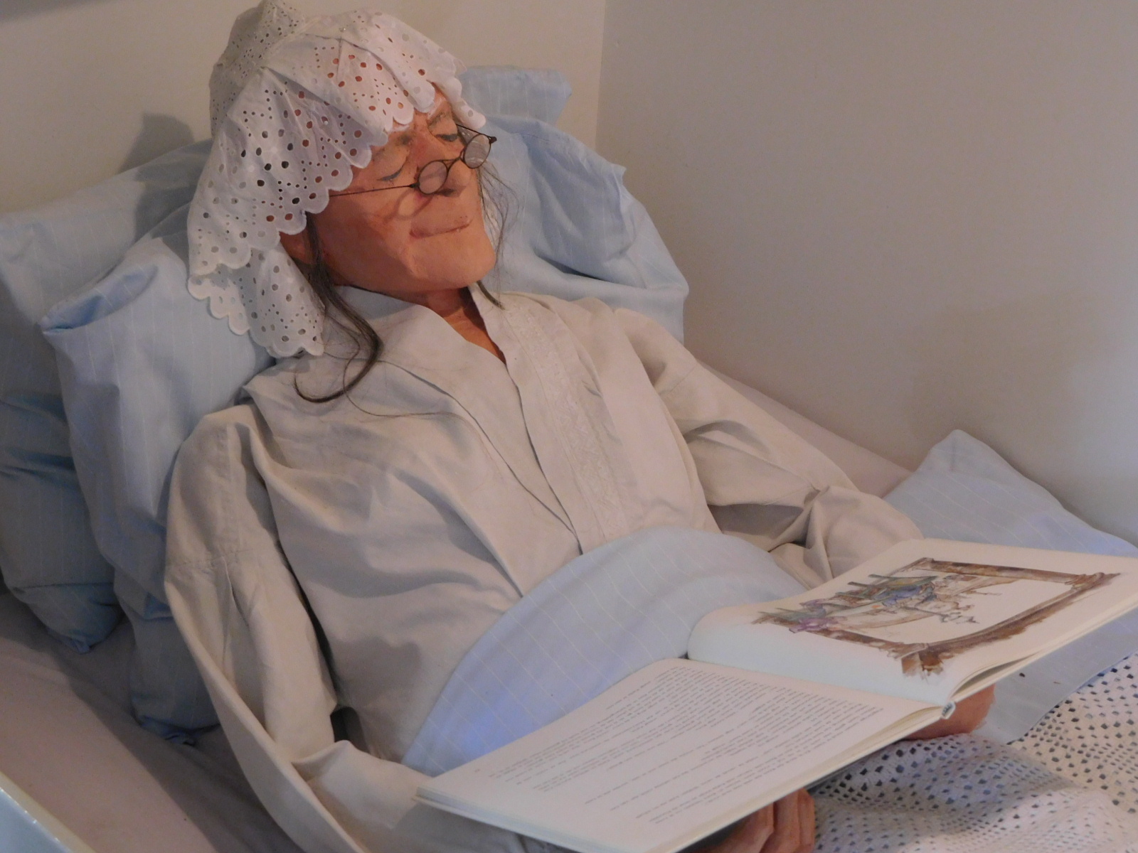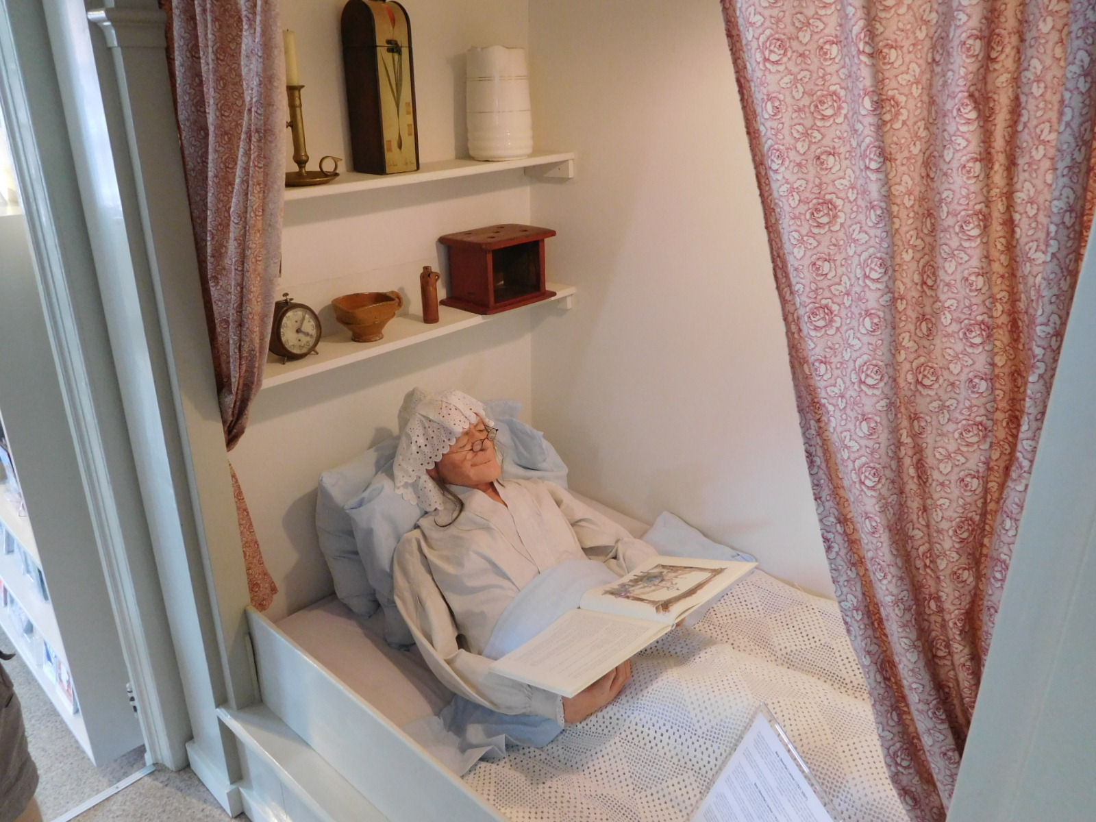 In the Tourist Information building they had preserved a "room" which actually was a "box bed". A sign explained that poor people might not have a full bedroom, but only a "box", which could be disguised by curtains during the day. The granny that they portrayed sleeping in their diorama looked very comfy