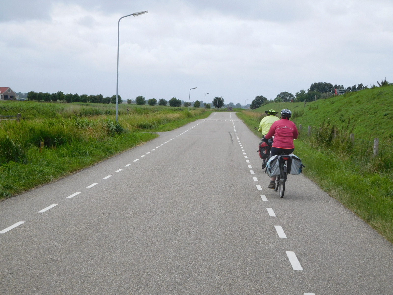 Up on the dike we had a "stiff breeze". According to Marvin, a sailor, it was bordering on a "gale". It made us glad of the ebikes. Even flat land is not flat when you are bucking a wind gradient.