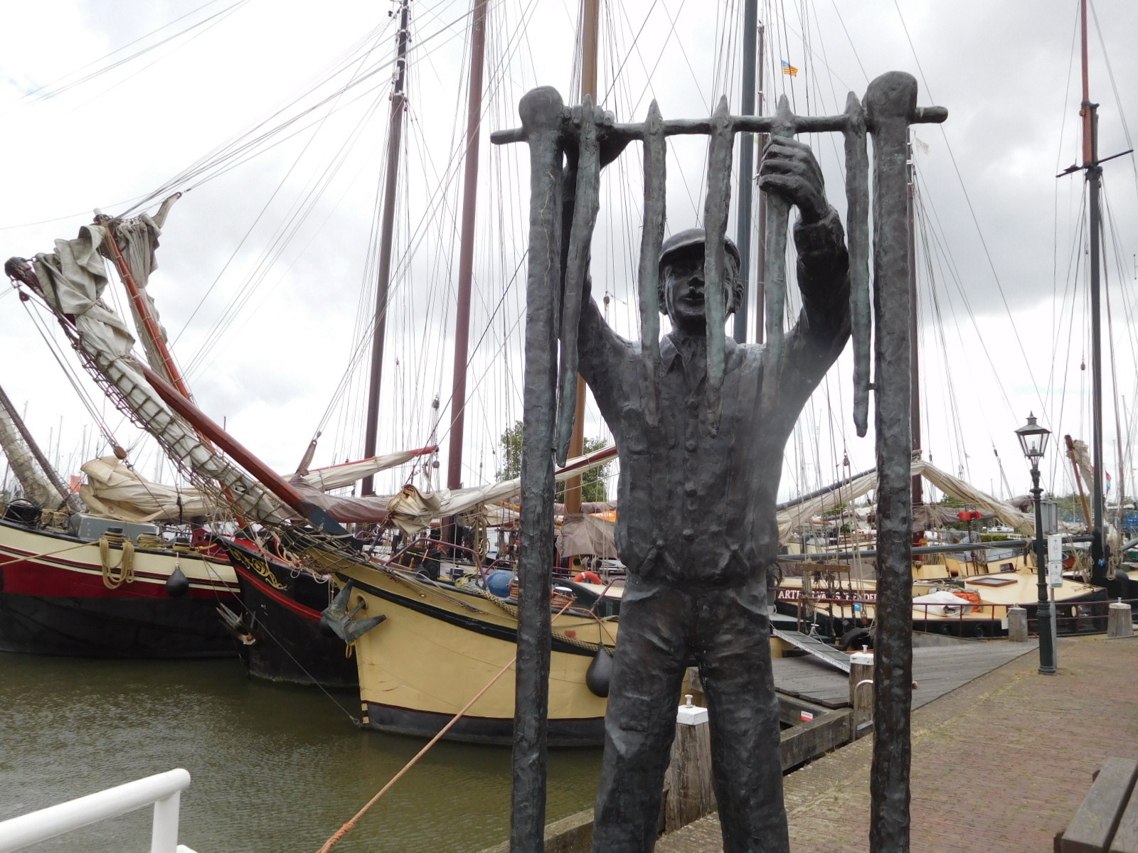 Although the land and buildings were nice enough, things did not seem to really ramp up in terms of iconic Holland until we arrive in Monnickendam. This little town featured many tall boats in its harbour. Looking at the clues we could pick up, we decided that this could be a tall boat convention. Monnickendam also had a historic church, and a clock tower/carrillon with moving figures, similar to what we had seen in Gouda.