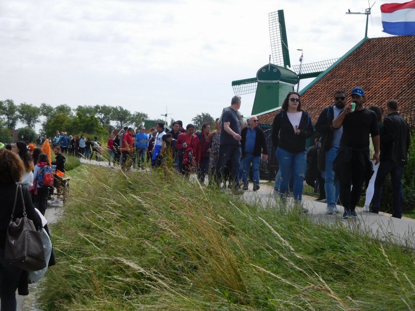 We continued happily until a bit of a rude awakening, at Zaanse Schans. Zaanse Schans is a little enclave where traditional houses and many windmills have been moved in and installed. There is also a museum, chocolate factory, wooden shoe factory, an other traditional Dutch activities being demonstrated. This in itself was fine and highly interesting. The rude awakening, was that after a peaceful day in the polders we found we had rolled back into the chaos that is Amsterdam. Zaanse Schans is a standard half day tour offered out of the train station area in town. People were being bussed and boated in in droves. We were running short on time in our day anyway, but had we wanted to check out any of the attractions in detail, it would have been a struggle to deal with the crowds.