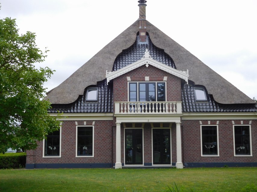 Leaving Edam and heading north and east toward the "Beemster" area I was struck by how garden like the country is here. There were flowers at all houses, all manner of birds taking advantage of the canals and fields, large polders covered in cows or sheep or horses or all together. Houses grew increasingly attractive, using the design of a square brick base and huge roof, with glossy tiles and/or thatch. It was all like one continuous garden centre, or farm tour, or home show, or all of the above.