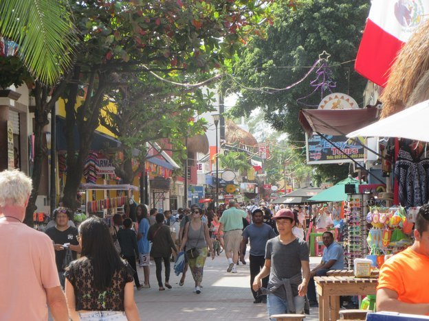 We got on to 5th avenue, which further on became the main drag of the tourist town.And the deeper we went, the thicker the tourists became, until it was a real, and quite exciting, zoo. Our plan was to take the ferry over to Cozumel island and cycle on it a bit, before returning to our booked spot at Playa.