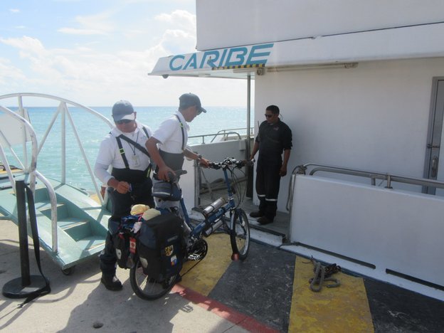 During the fifteen minutes, as has happened so many times before, somebody interested in our trip came to talk to us. It was Gilberto and Coni - Gilberto from here and Coni from Chile. Gilberto had cycled from here to Chile, and if I got the tale right, had met Coni there. Coni had worked in Germany for two years, and had some interest in taking Gilberto to cycle there. They were concerned about hills, and so let themselves in for a 15 minute presentation on the River Routes of Europe. Tricia Graham - I could have used you as a guest lecturer. We ended anyway with an invitation to stay with Gilberto in Playa, and had to work hard to convince him we were staying in Cozumel. We know that this, or any "warm showers" type situation, means the blog will not get written!