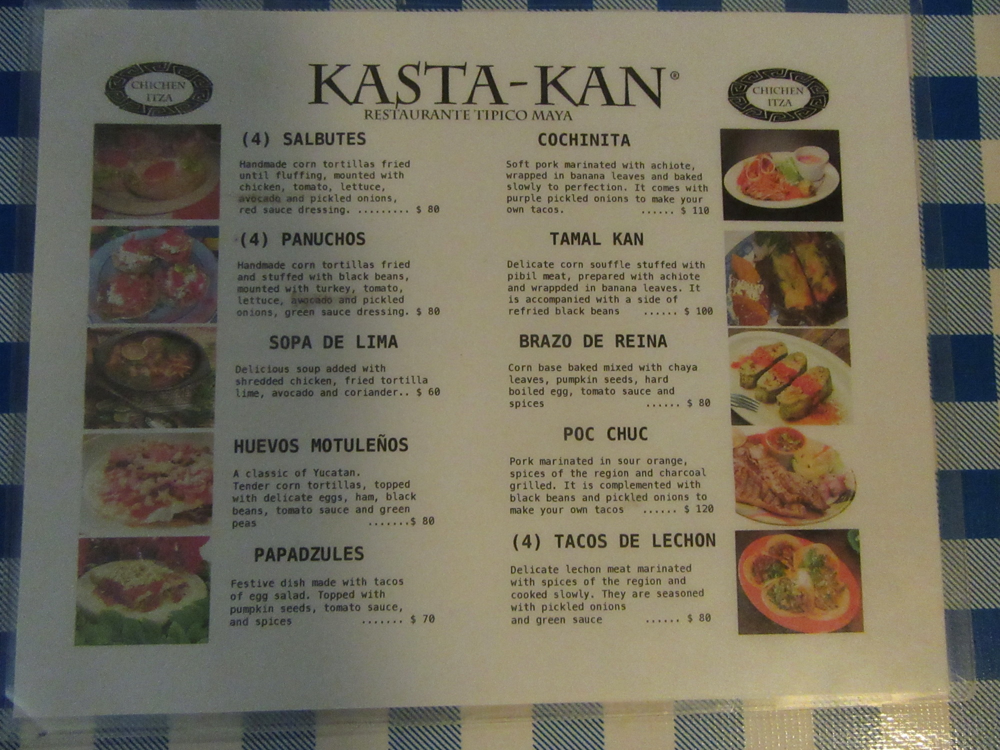 We walked past what we assumed had to be the overpriced restaurant at the cenote and went to our own restaurant across the street. We now know enough to see how it too was slightly overcharging - like 120 for the poc chuc that "should be " 90-100. That is what I ordered still - it is now my standby and clearly the wiener schnitzel of this place. Dodie went for Brazo de Reina - a corn cake thing with Chaya leaves, pumpkin seeds, hard boiled egg, tomato sauce, and spices. At least that is what the menu said. After the cold cenote swim, I was so hungry I just inhaled the piece Dodie shared without a lot of savoring!