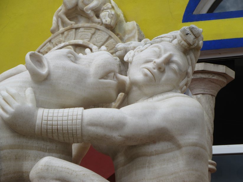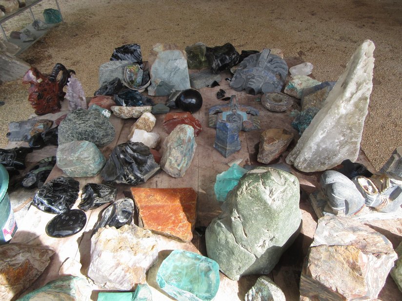 As we approached the little town of Xcalacoop, we came across a craft shop with a difference. This was set back from the road in a very beautiful building, and was surrounded by large statues carved from semi precious minerals. We rolled up and were greeted warmly, but not by a man intent on selling. Rather we got a genuine, informative, and low pressure tour of the site, which contained the actual workshop where the carvings were made.