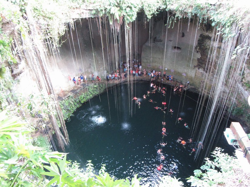 The crowds at Ik Kil must be a foreshadowing of what is at Chichen Itza. Though we have said we don't mind people, and though the cenote is beautiful, I had to elbow my way through tourists 5 deep to reach the water and jump in. That was not appreciated.