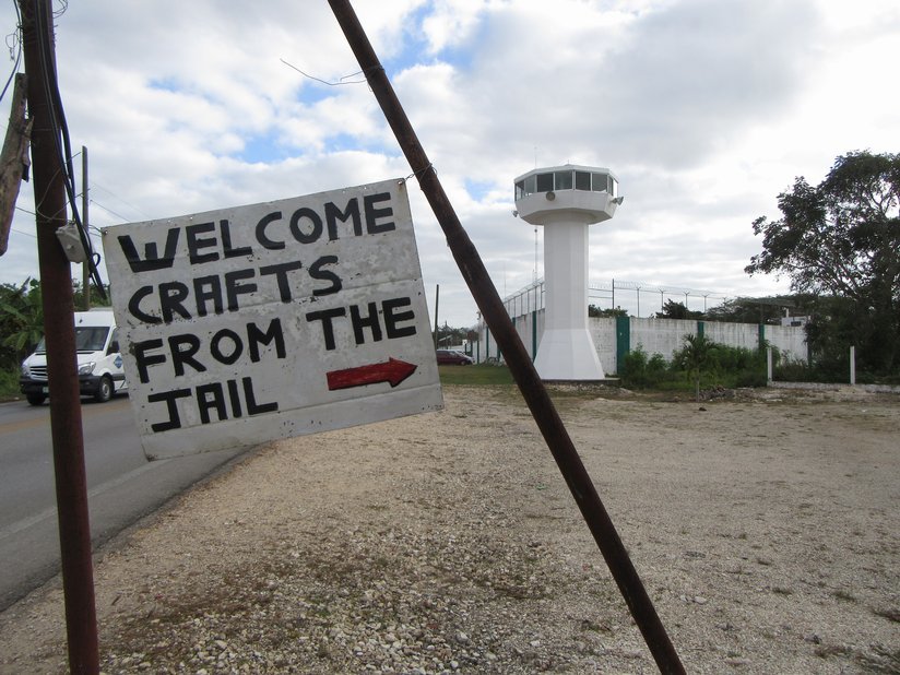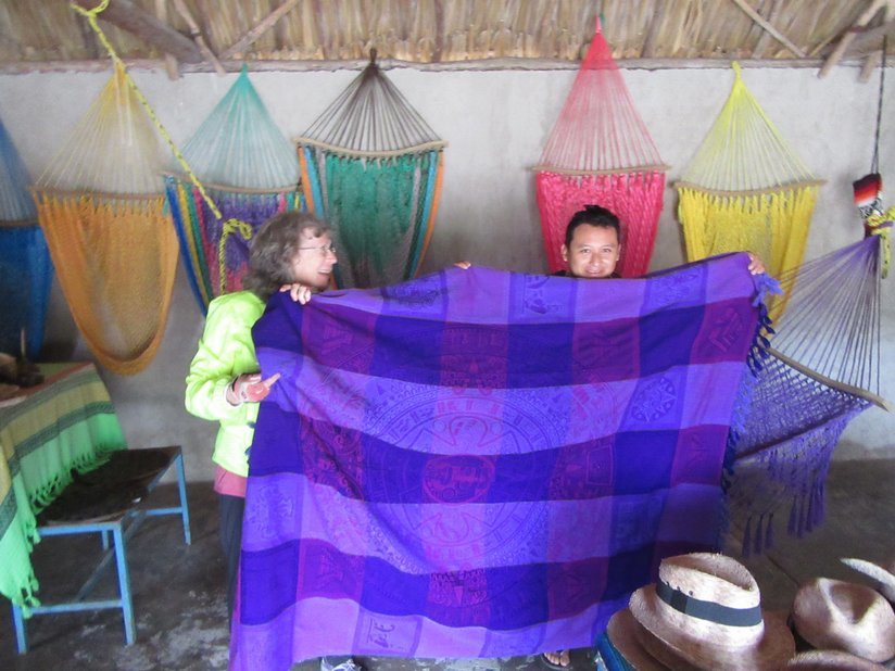 The bikes turned out to belong to Ingeborg and Jelle, from Ghent. They are cycling from Cancun and will swing around Guatemala and Belize before returning. These are absolutely the only touring cyclists we have seen while here. Naturally we had a great time exchanging biographies and invitations to stay with each other. While I was blabbing on, Dodie managed to slip off and negotiated the purchase of a blanket, made in the prison. It's gorgeous, but would never have happened without these unique circumstances.