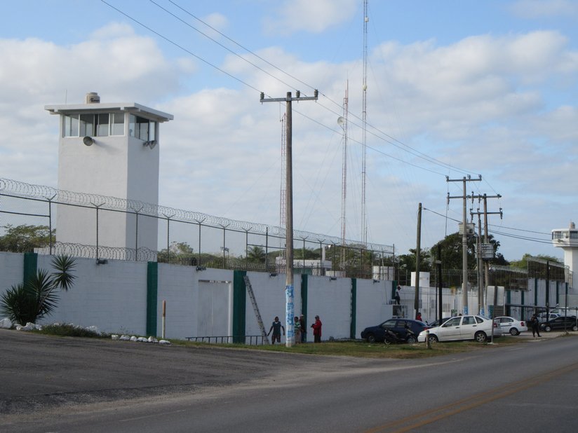 The bypass rejoined 180 and we rollicked along for a bit, finally arriving at a jail, easily recognizable by its watch towers. A little incongruous, and visible in the photo if you look carefully, were the people with ladders thrown up on the outside jail wall. Surely they were not trying to break in! Although, as we were soon to see, it might be a pretty good jail to live in.