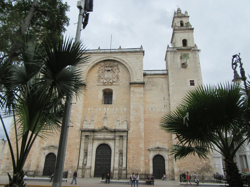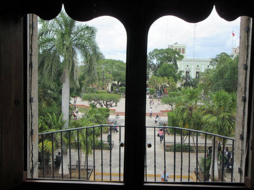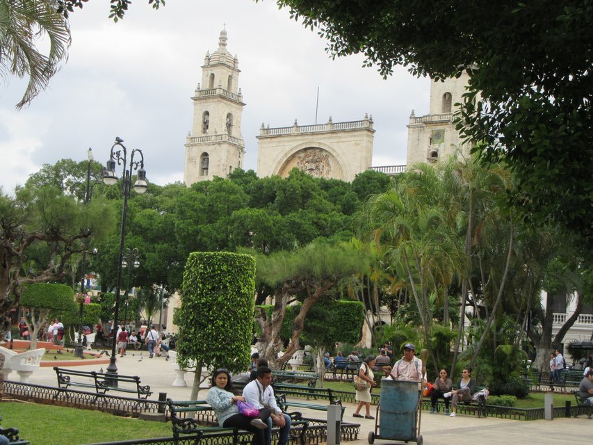 The central square of Merida is large and leafy, and surrounded by two churches, the governor's palace, and the Casa de Montejo that we just visited.