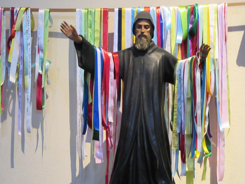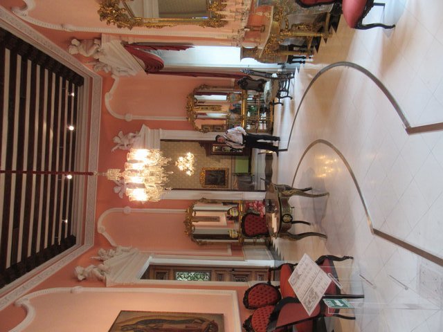 Dodie's knees were complaining that all this walking was not much of a day off, so we stashed her back at the hotel. I charged off for a look at the churches. Only one was open, and inside was fairly plain. For example, no stained glass. But there was one statue of an obscure saint that was attractively decorated with coloured ribbons. People were gathering for a service. That would have been interesting - something to compare to Spain - but I had another mission.