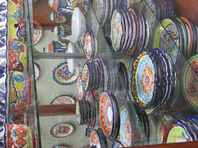 One thing we did look at was sisal hats. But the cheapest quality of these was 1800 pesos. That $126, too rich for our blood. The man could see that an again did not push at all. Still it did not prevent him from explaining about how they were made and what the various quality levels were, plus trying some on us.