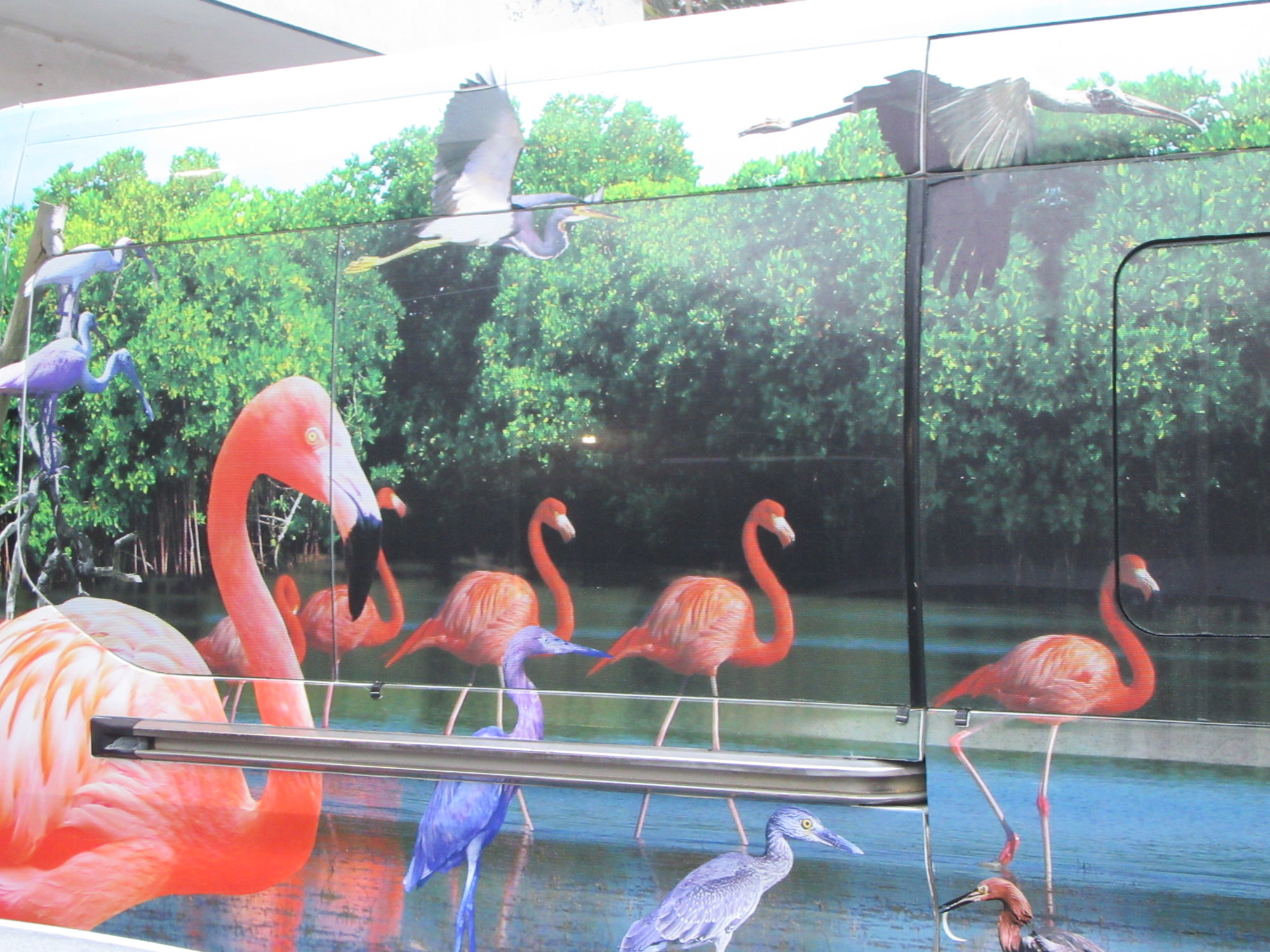 In fact, flamingos suffuse their lives. Have a look at the company van in the first picture below. That's normal, but in the next shot you can see the tattoo on Diego IV's leg!