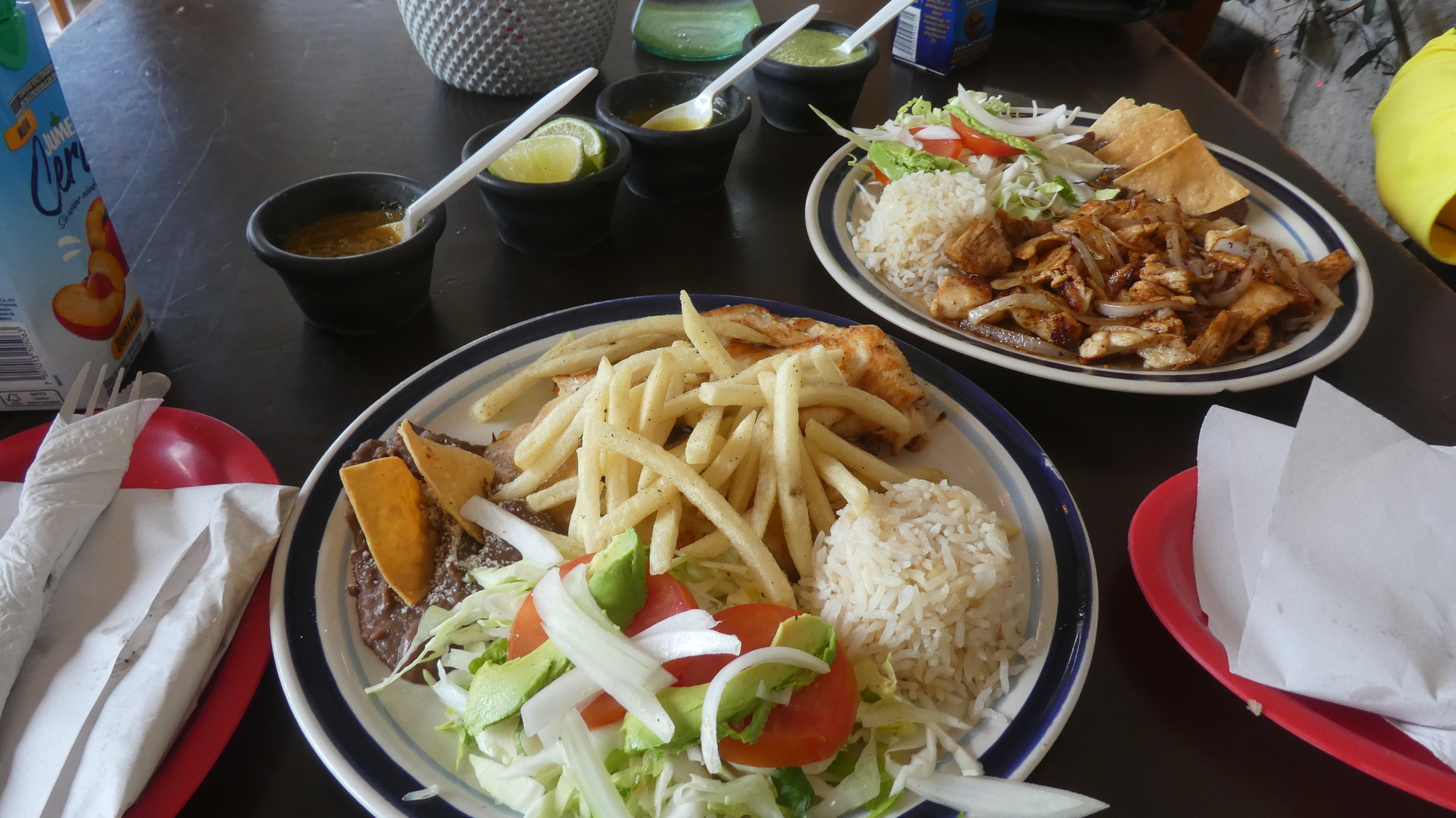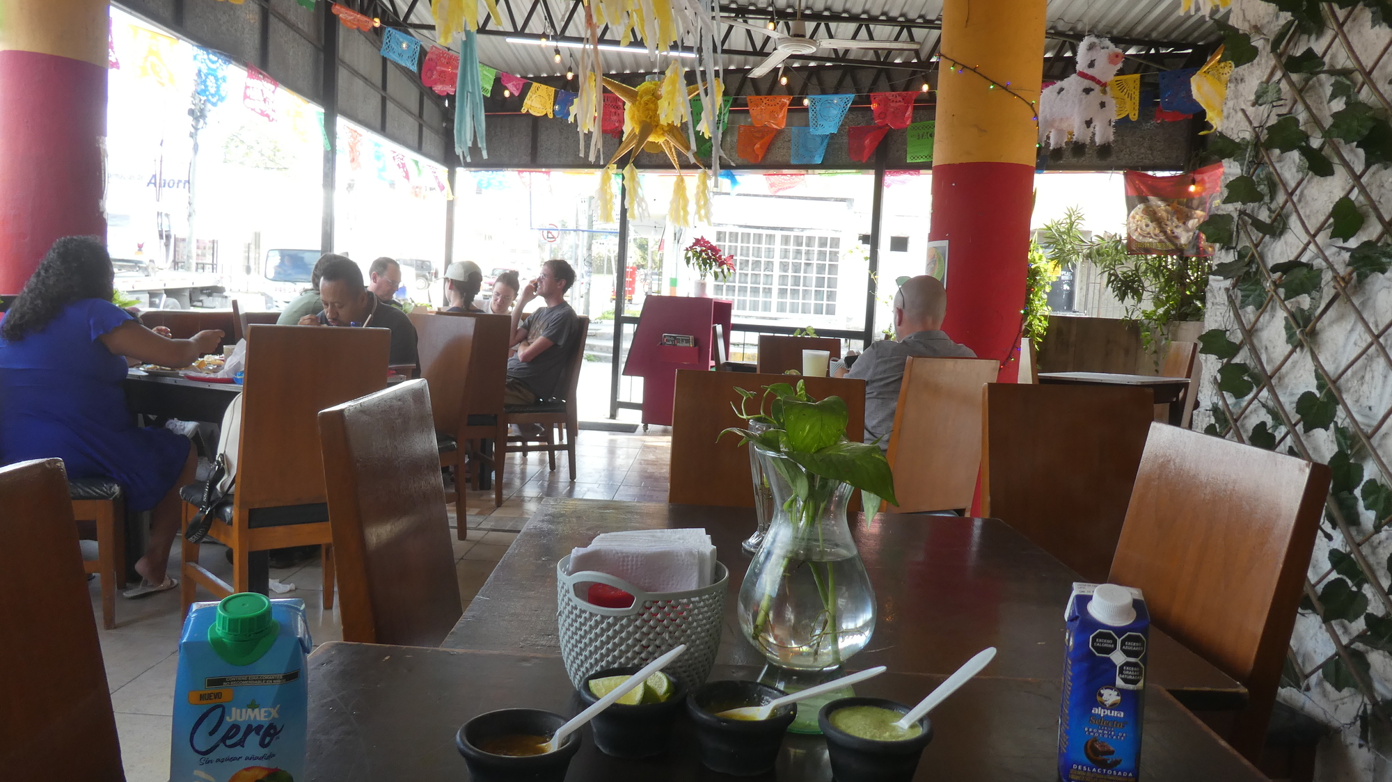 We nipped in to one of the restaurants, and were glad of the shaded seating, with a nice breeze. And we were also pleased with the affordable menu, and the prevalence of salad, limes, guacamole, refried beans and corn chips, tortillas, and salsas with every dish.