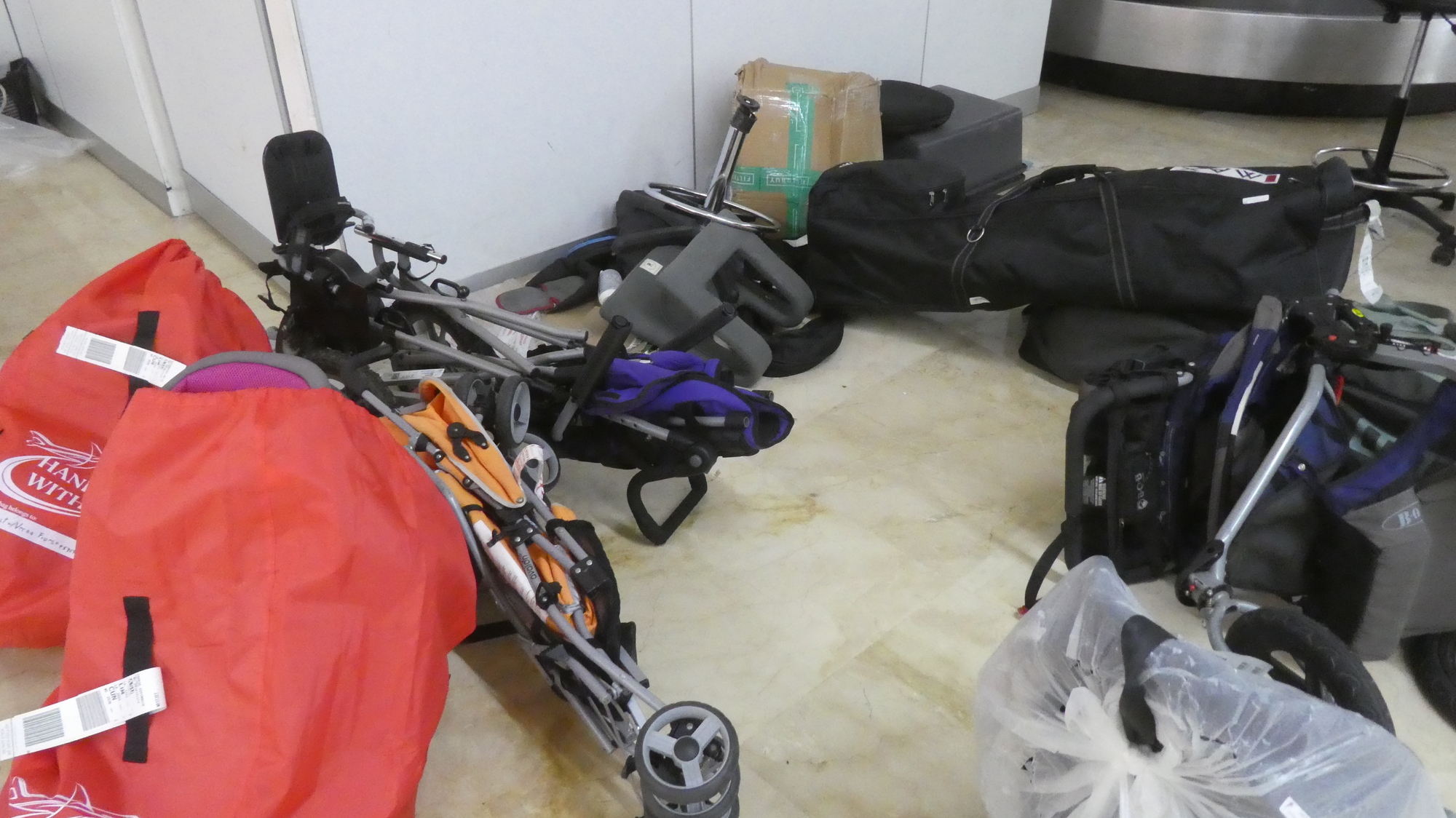 I got stationed at the oversize luggage belt, while Dodie went to collect our other checked bags. I looked gloomily at the disheveled pile of previous deliveries, and waited.