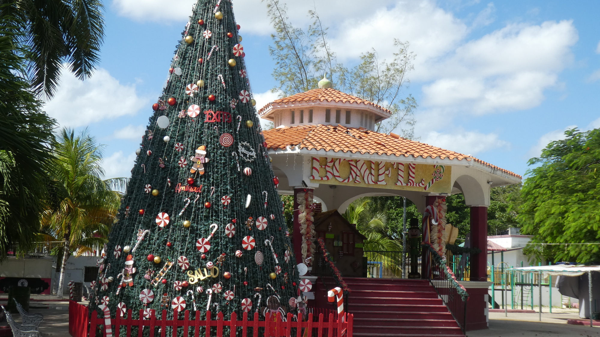 Our staff has now quit their celebration, but the duty to make noise has been picked up by some others, about 1/2 block away. It could bug me, but in just a few minutes more I will join Dodie in dreamland. We set our alarm for early, because it looks like birds might like the trees around our pool.